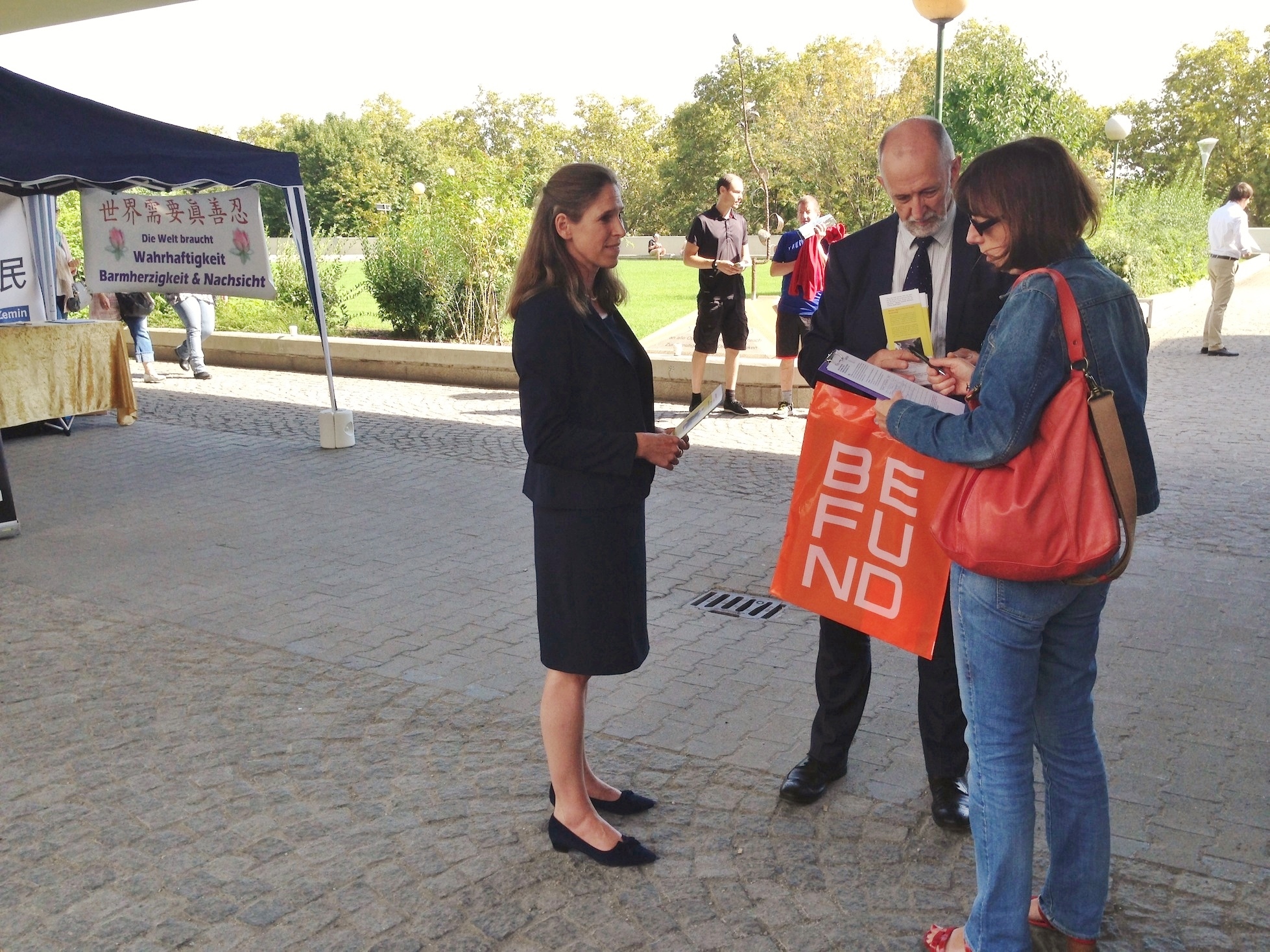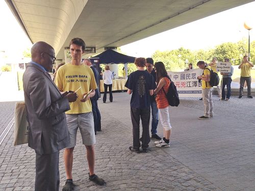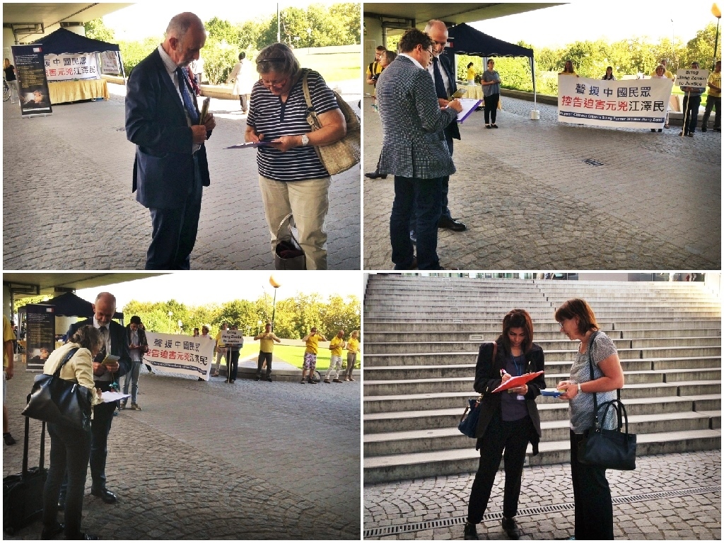 当天有缘听闻真相的人们代表着不同的国家、文化、职业、和年龄,他们中不少人有着相似的反应:第一次听到中共迫害法轮功真相,特别是中共的活摘罪行的人感到非常震惊,对江泽民恶首发起迫害法轮功表示不可理解,接着毫不犹豫地签名谴责中共迫害暴行。
