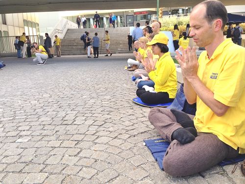 还有一些人,包括做教师的尚塔尔(Chantal)女士,第一次经过时接过真相传单,阅读了解真相后专门赶回来签字谴责迫害。