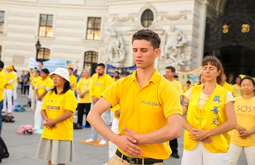 维也纳当地的Patrick Arthofer是一名刚刚修炼一年多的法轮功新学员,他积极参与了本次活动的部分组织工作,“我希望能帮助人们了解法轮功被(中共)迫害的真相,目前在中国发生的政局变化,江泽民正在被(全球)起诉,正在逐步、不可避免地走向审判台。”他表示自己是一名法轮功学员,“对我来说到这里来感觉非常好,我非常高兴。”