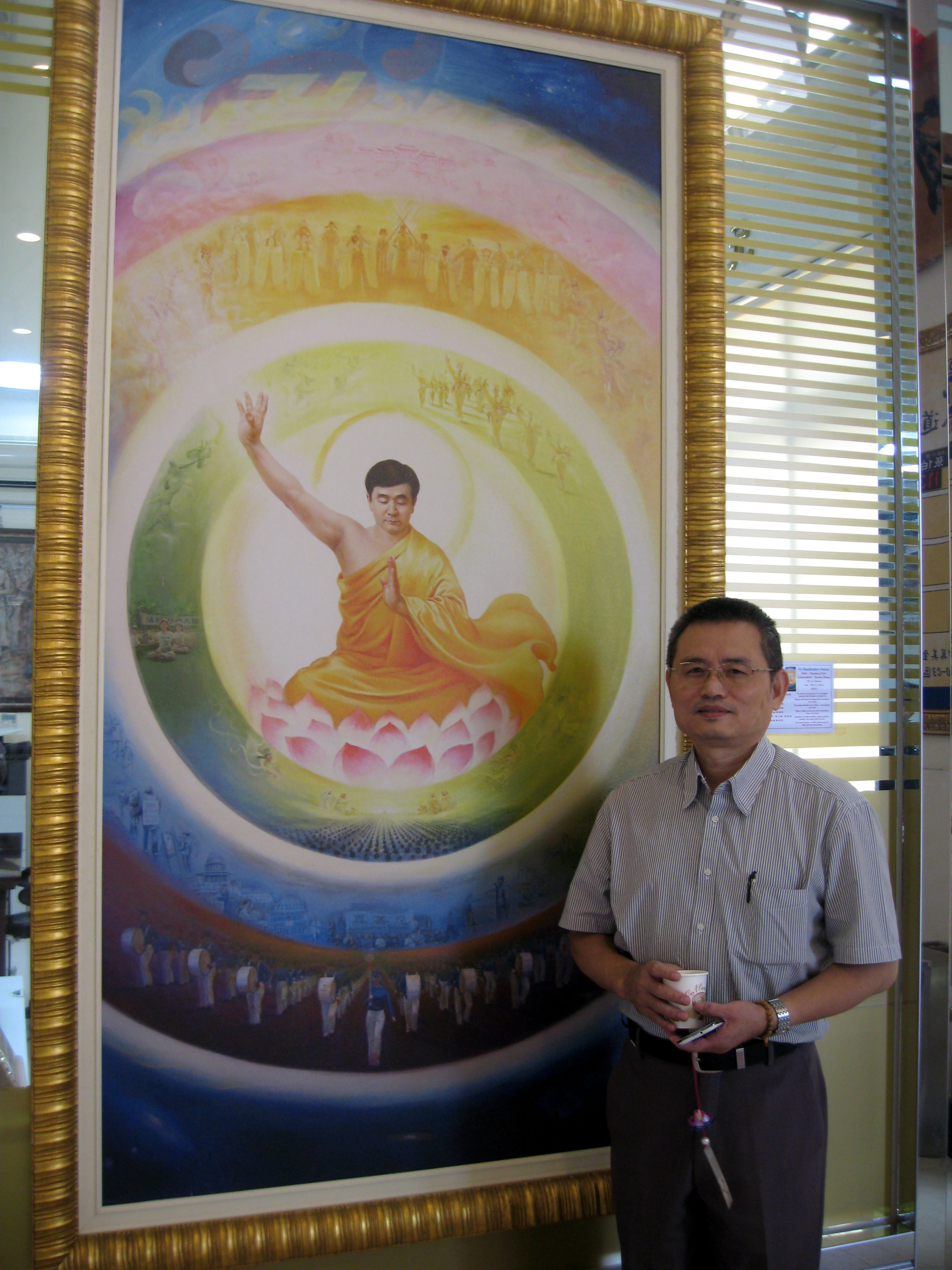 台湾知名的金墩米董事长沈永志仔细地欣赏画作并聆听导览。本身学佛的沈永志说:“在这么复杂的世界,透过真善忍的修行,自然能跳脱出来,脱俗。所以画展能展现这么纯净的修为,在画作中都能感受得出来。我相信对世界的净化、对人心的净化,非常有直接的效果。”同时他认为“虽然(法轮功学员)遭遇这么多的迫害,可是他们心中祥和、平静,以这么和平的方式(来制止迫害),最能感动人心。”