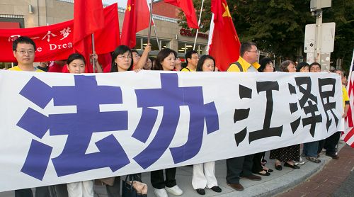 ![]() 图1-2:华盛顿DC法轮功学员在习近平入住的酒店附近的街道上呼吁法办江泽民 |