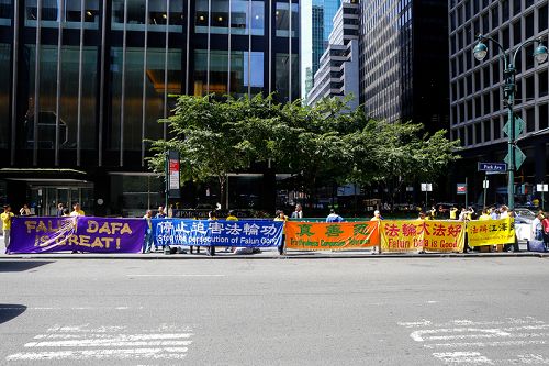 ![]() 图1-2:二零一五年九月二十五日,纽约部分法轮功学员在联合国总部对面进行了和平请愿,呼吁制止迫害,法办江泽民。 |