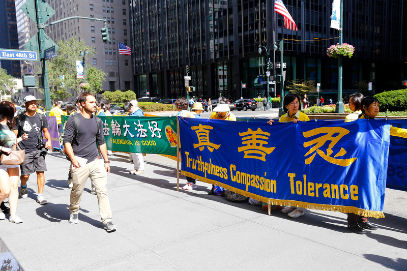![]() 图3-6:二零一五年九月二十五日,纽约部分法轮功学员在习近平将入住的华尔道夫酒店对面和平请愿,法轮功学员展现的祥和理性受到路人的赞许。 |