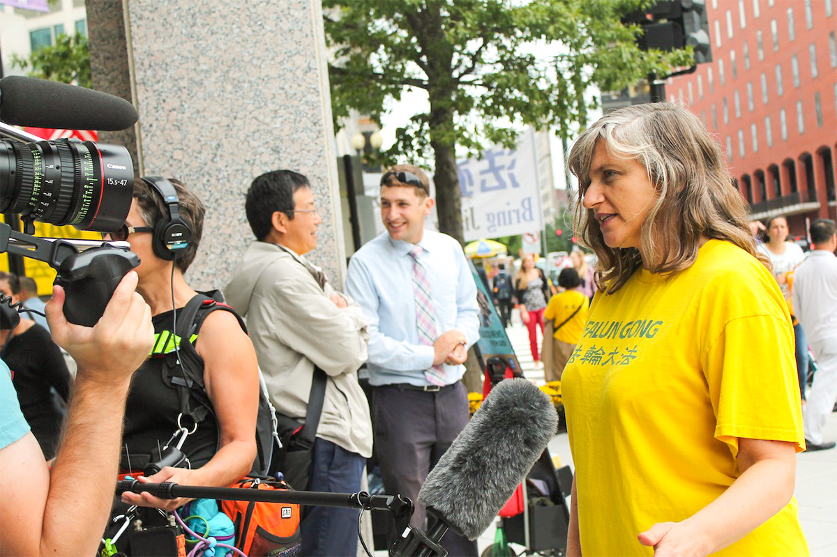 ![]() 图7:九月二十五日,西方主流媒体在白宫附近采访了讲真相的法轮功学员。 |