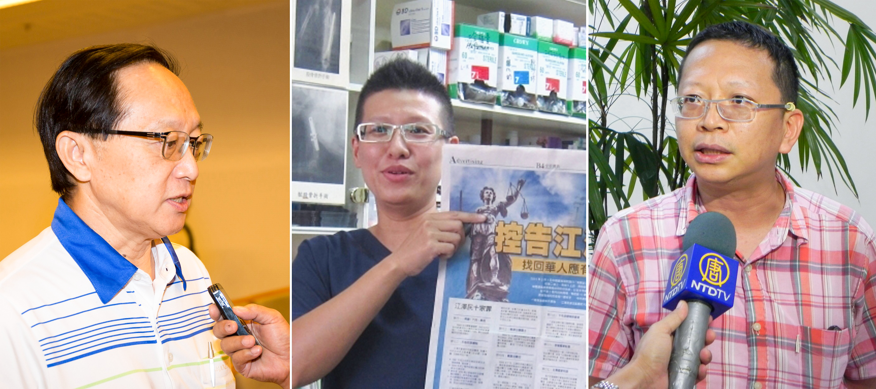 ![]() 律师、企业团体也发起举报联署,希望能将迫害的元凶江泽民绳之以法。台湾著名的人权律师曾锦源(左)、中华民国模具技术发展学会理事长简佑泽(中)、中华音乐文化教育基金会秘书长翁崇伟(右) |