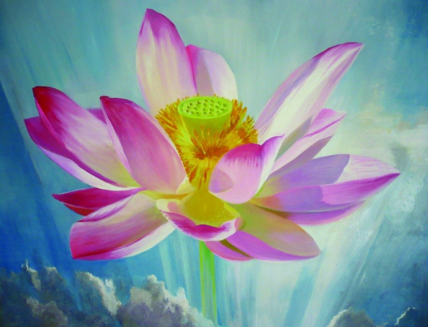 修炼法轮功后,艾欣的绘画技艺进步很大,特别法轮功被迫害后,有段时间,艾欣和同修住在一起,她们早上起来先炼功,之后学一讲《转法轮》,然后她开始画画,从画花过渡到画人物,有时一天就能画一幅,绘画技艺突飞猛进。她画莲花、画红眼石狮、画法轮功学员晨炼、学法等,还有的是洪扬传统文化,有的借画喻志,表达自己坚定修炼的意志。