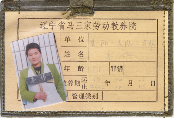 ![]() 姜伟在马三家教养院登记卡片一张(内含狱中举牌照片一张) |