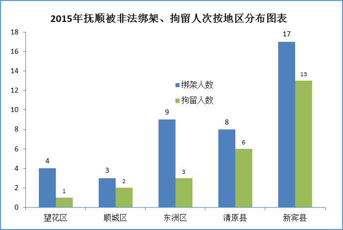 据明慧网报道所做的不完全统计,二零一五年抚顺地区法轮功学员被迫害致死1人,被绑架、拘留64人次,被非法判刑16人,被非法庭审7人,被非法批捕8人。见以下图表。