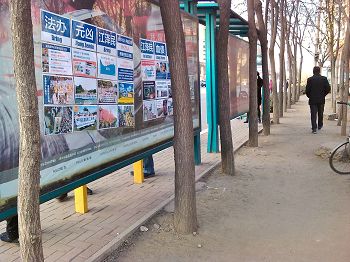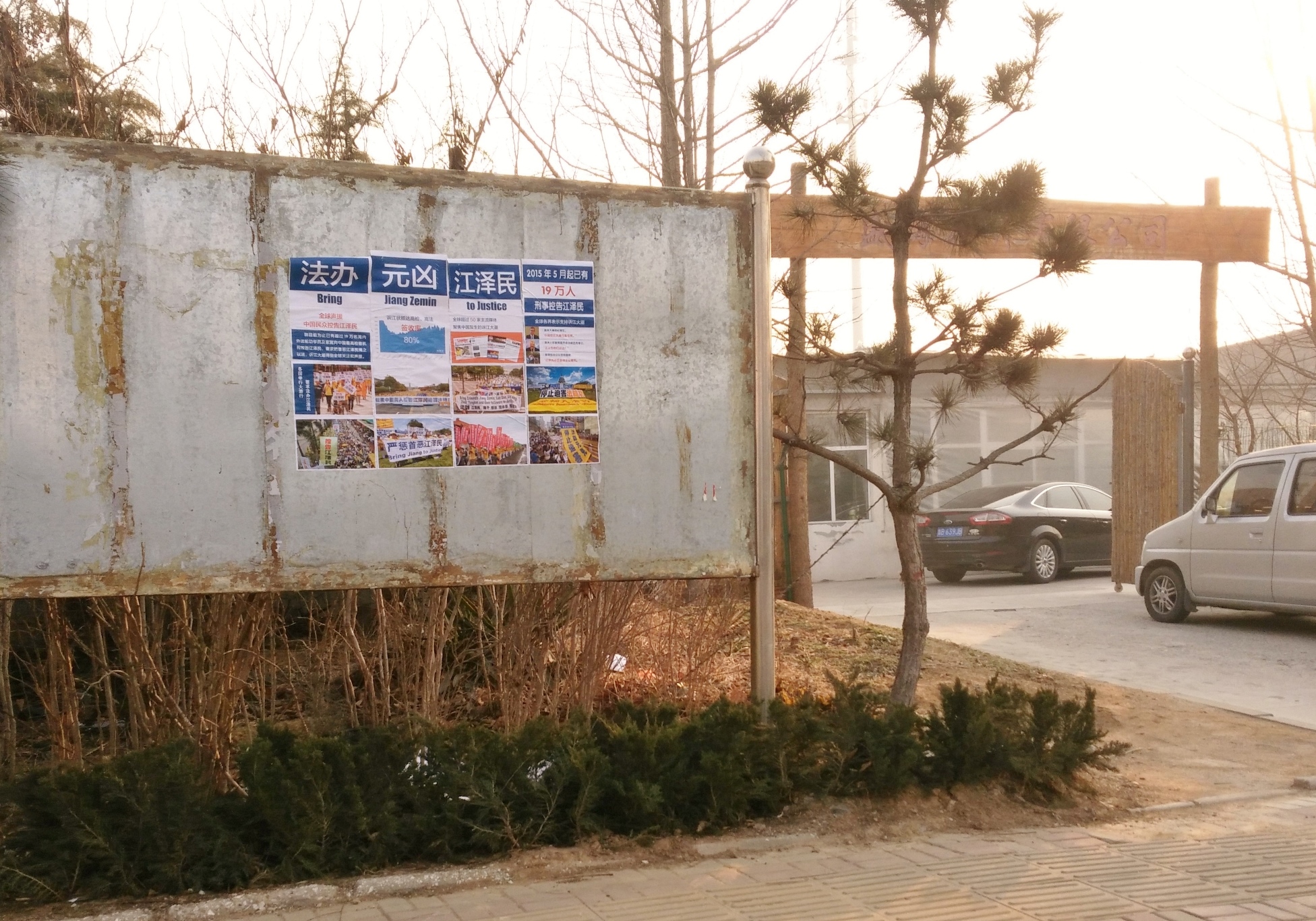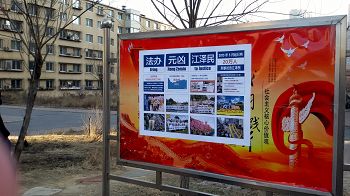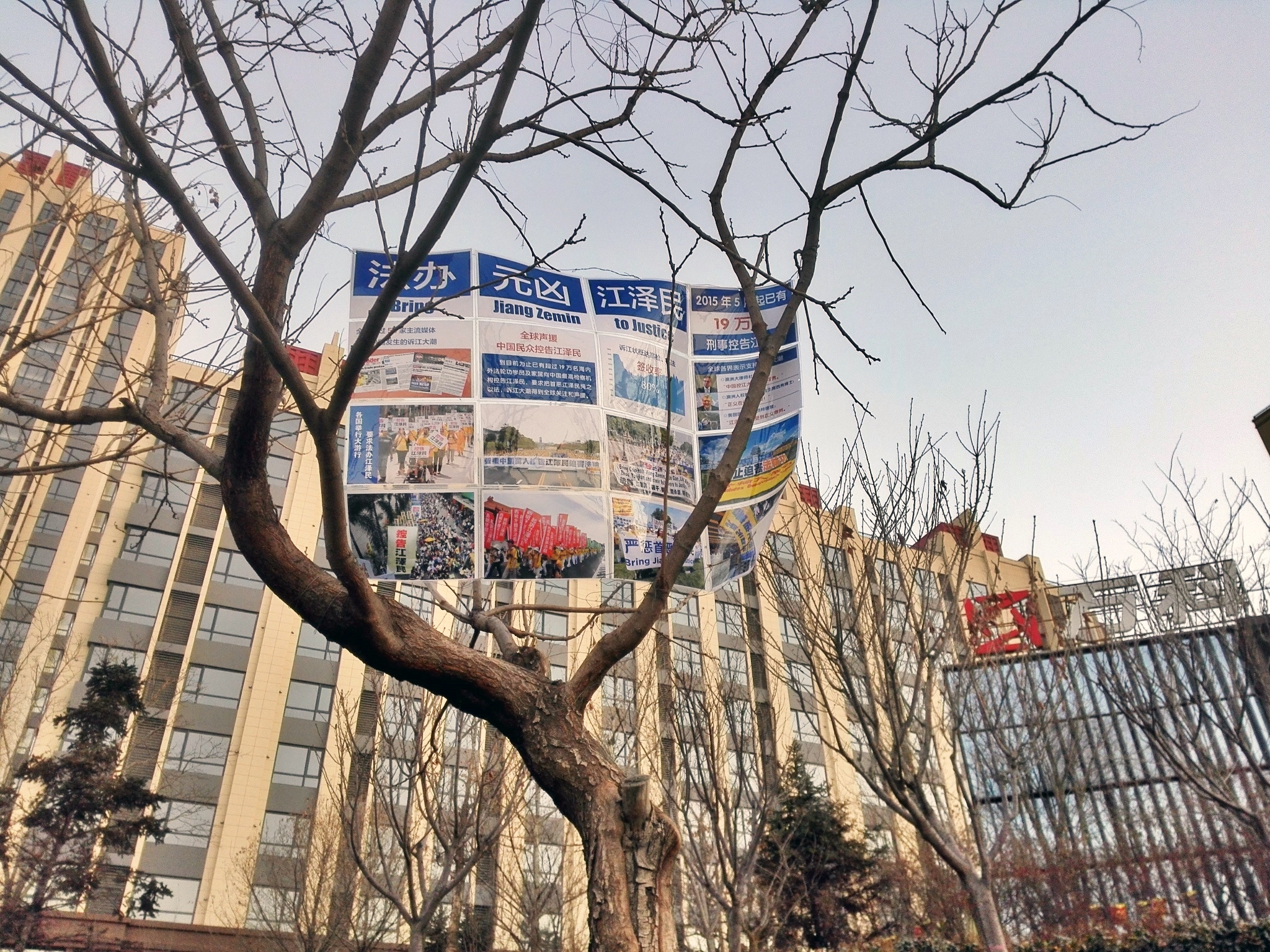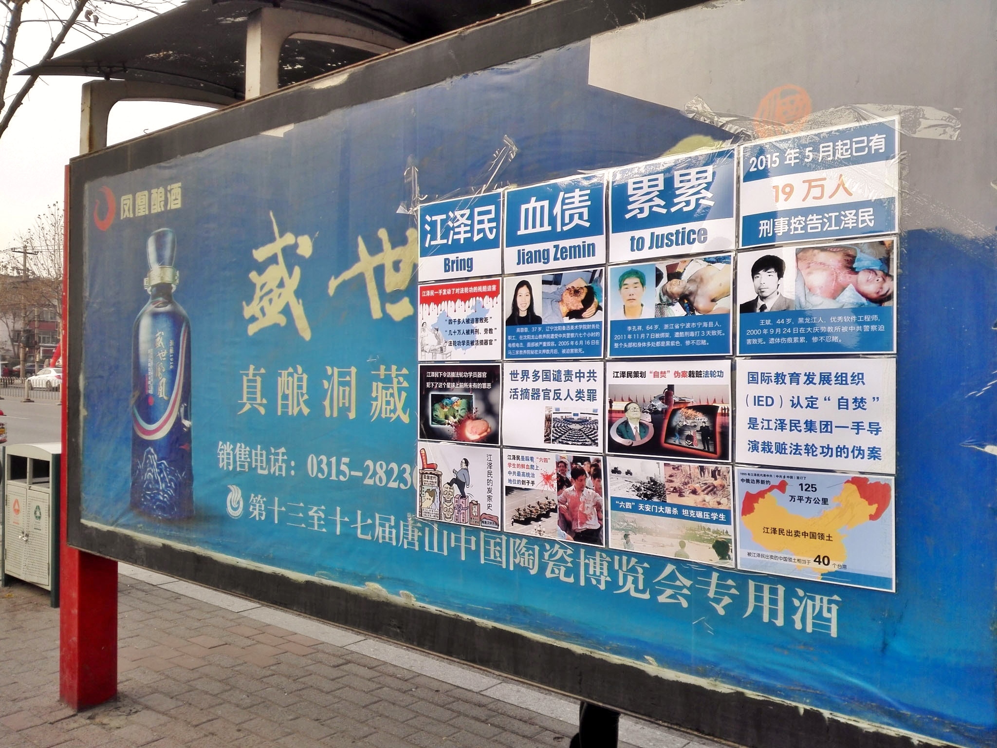 近来在河北省唐山市的各大街小巷都出现了法办江泽民、残酷迫害、活摘器官等展板,还有关于起诉江泽民的标语。