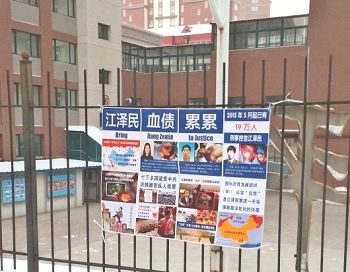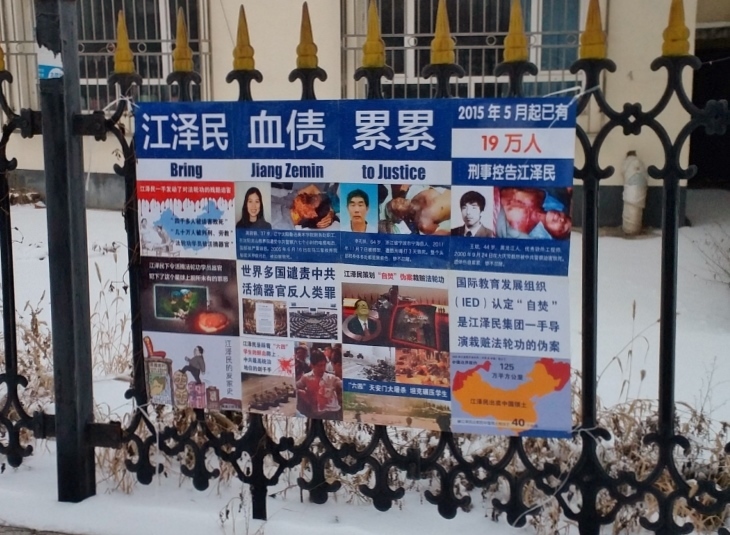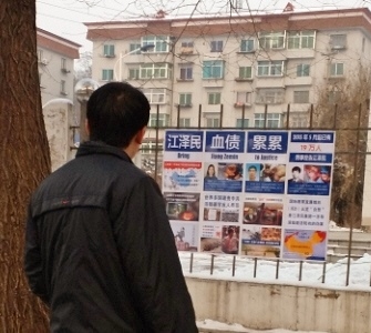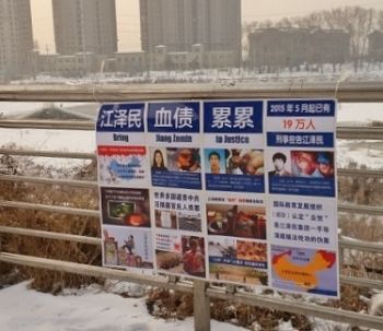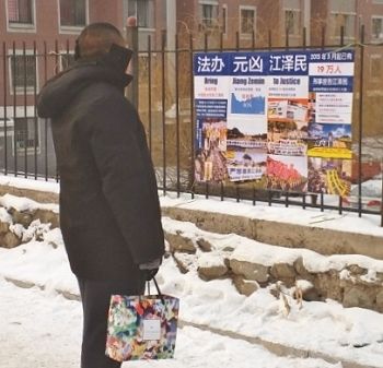 二零一六年新年伊始,在河北、黑龙江、辽宁、吉林、山东等地,不少城镇乡村都出现了“诉江展板”,以图文的形式告知人们江泽民对法轮功学员的残酷迫害的事实,以及海外各国民众和政要对于诉江的支持。