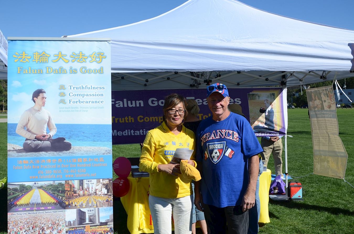文化节也有不少中国大陆人士前来参加,就职国内一家出版机构的申先生告诉学员,他很理解法轮功学员做(讲真相)的事情,他还要走了明慧网的网址以及突破网络封锁的方法,表示回去要好好了解。