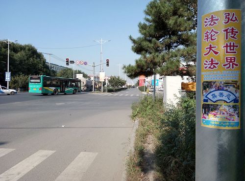 山东、辽宁等地大法弟子挂条幅庆祝世界法轮大法日