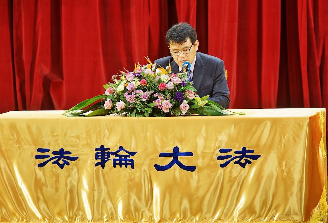 作为天国乐团成员他还谈到自己在乐团中修炼的体会。他在天国乐团活动演出时有很深的感受,每当演出前他就背一下师父的新经文《天国乐团》。此经文提醒他要专注在演奏上,保持正念,清除所有的杂念,时刻处于救人的状态中去。这样思维也变得非常纯净,感受到神在人中,感受到另外空间的能量场,与人间肉身的相互震动,那是佛法无边的威力展现。他认为天国乐团成立的宗旨就是用音乐打动人心,洪扬“真善忍”的精神,传播大法的美好。能成为天国乐团一员,他感到很荣幸。