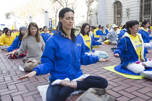 【明慧网二零一六年十月二十三日】(明慧记者容法旧金山报道)二零一六年十月二十二日上午,约三千位来自世界各地的法轮功修炼者,汇集在旧金山联合国广场(UN Plaza)集体炼功,宏大场面吸引着过往的路人。