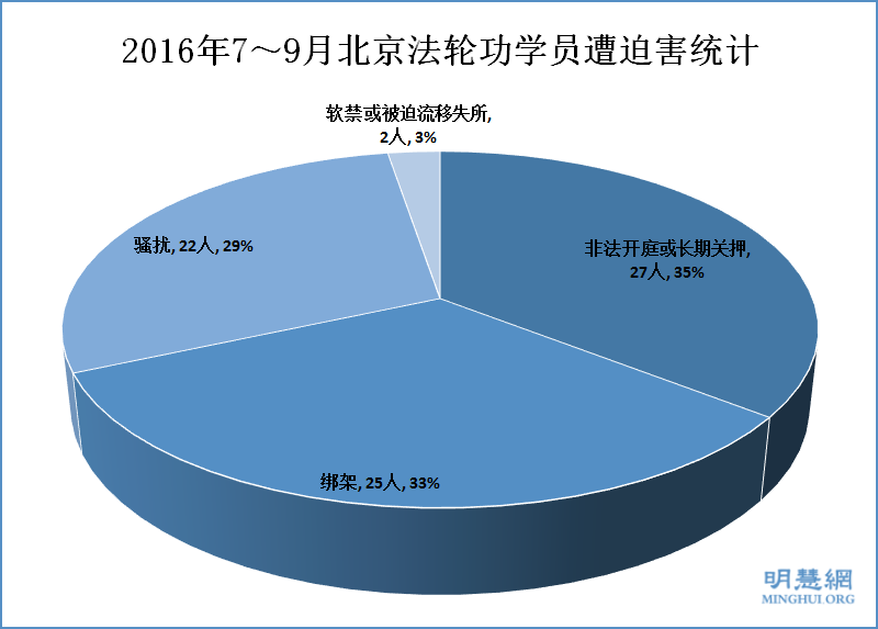 ![]() 2016年7~9月北京法轮功学员遭绑架、骚扰迫害统计 |
