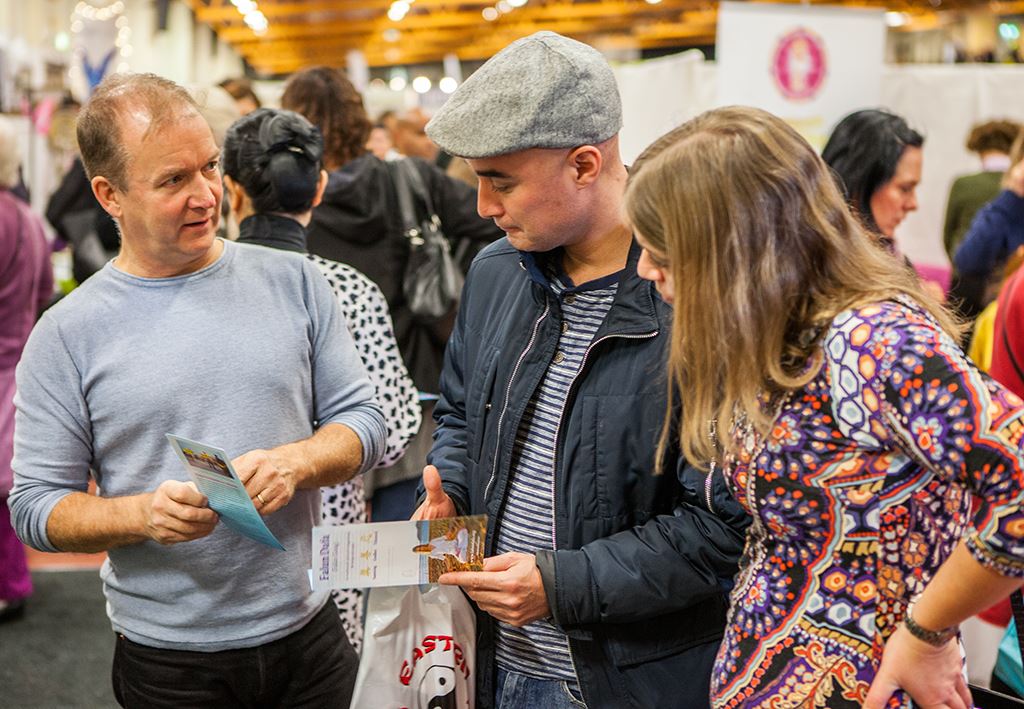 法轮功学员与往年一样,不仅设立了展台,还安排了专场演讲,介绍什么是法轮功。由于第一天来听专场介绍的人很多,房间里的座位都坐不下了,主办方在第二天帮忙换了一个大的房间。