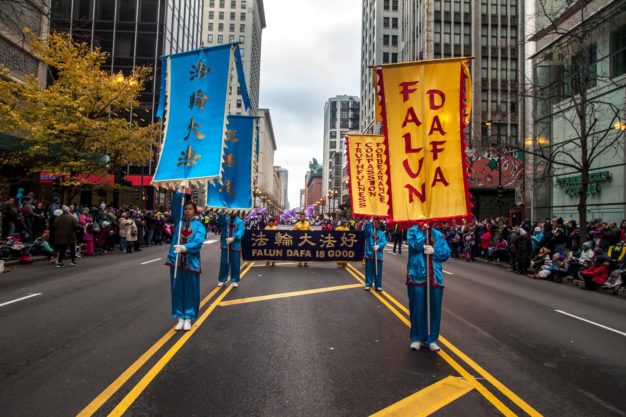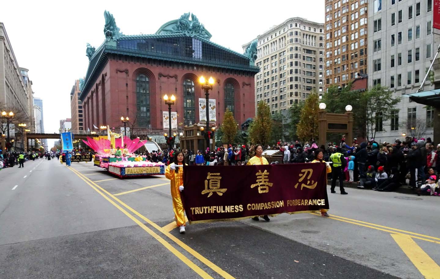 ![]() 图1-7:法轮功学员参加芝加哥第八十三届感恩节大游行 |
