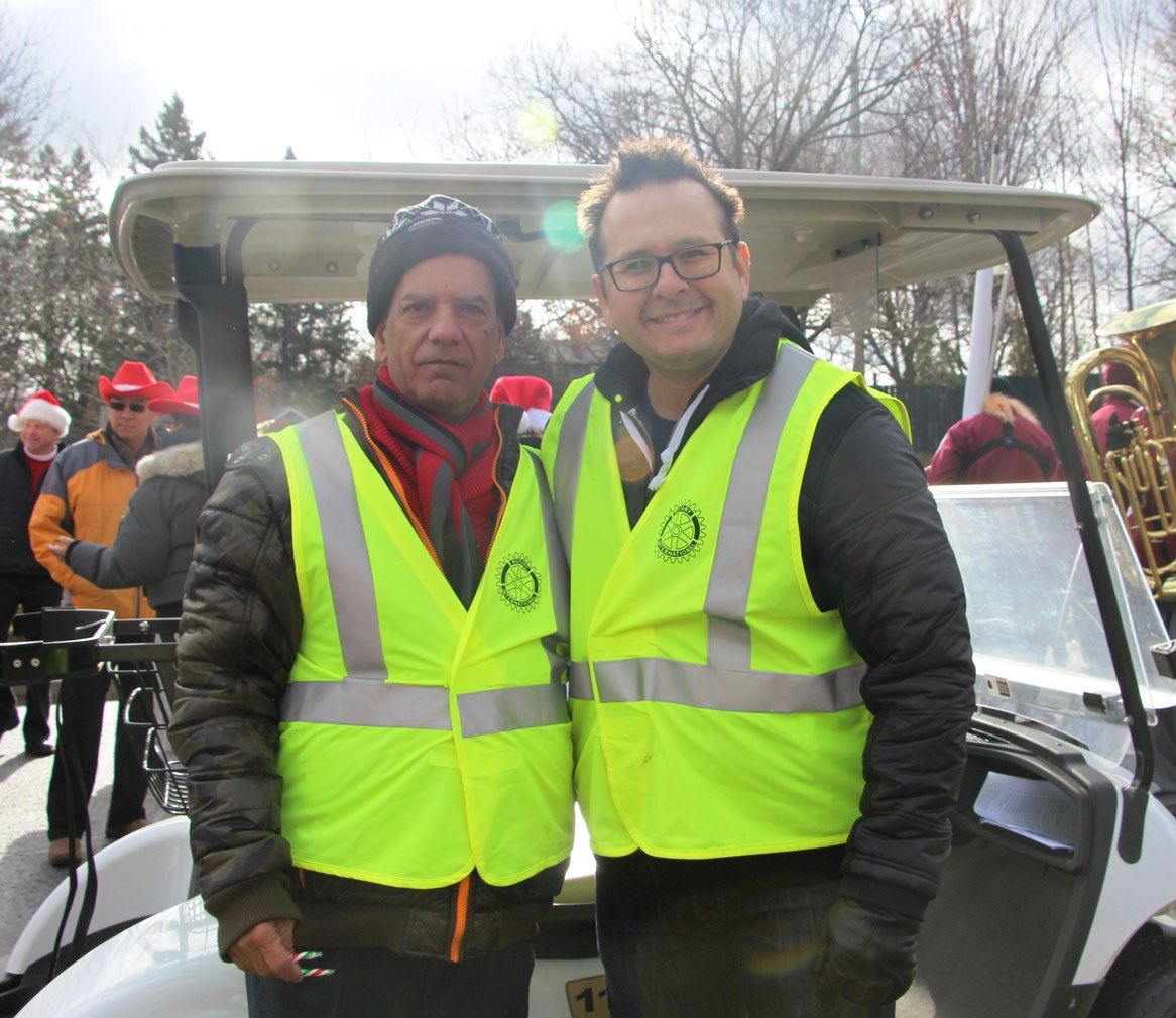 ![]() 图7:万锦市游行的协调人之一Mike(右)表示每年都期待着天国乐团的到来;另一位协调人George(左)表示感谢法轮大法的团体给人们带来圣诞的快乐气氛。 |