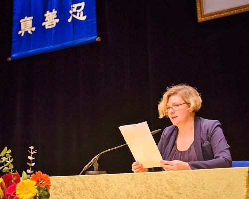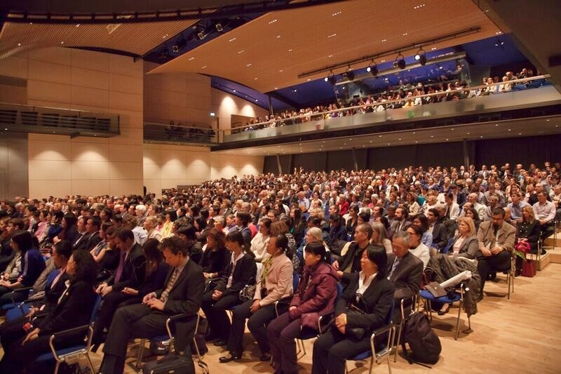法会开幕后,法会主办方首先以中、英和德三种语言宣读了法轮功创始人李洪志先生发来的贺词,李洪志先生祝法会圆满成功!同时叮咛法轮功学员:“作为一个修炼者,修是修自己。”[1]