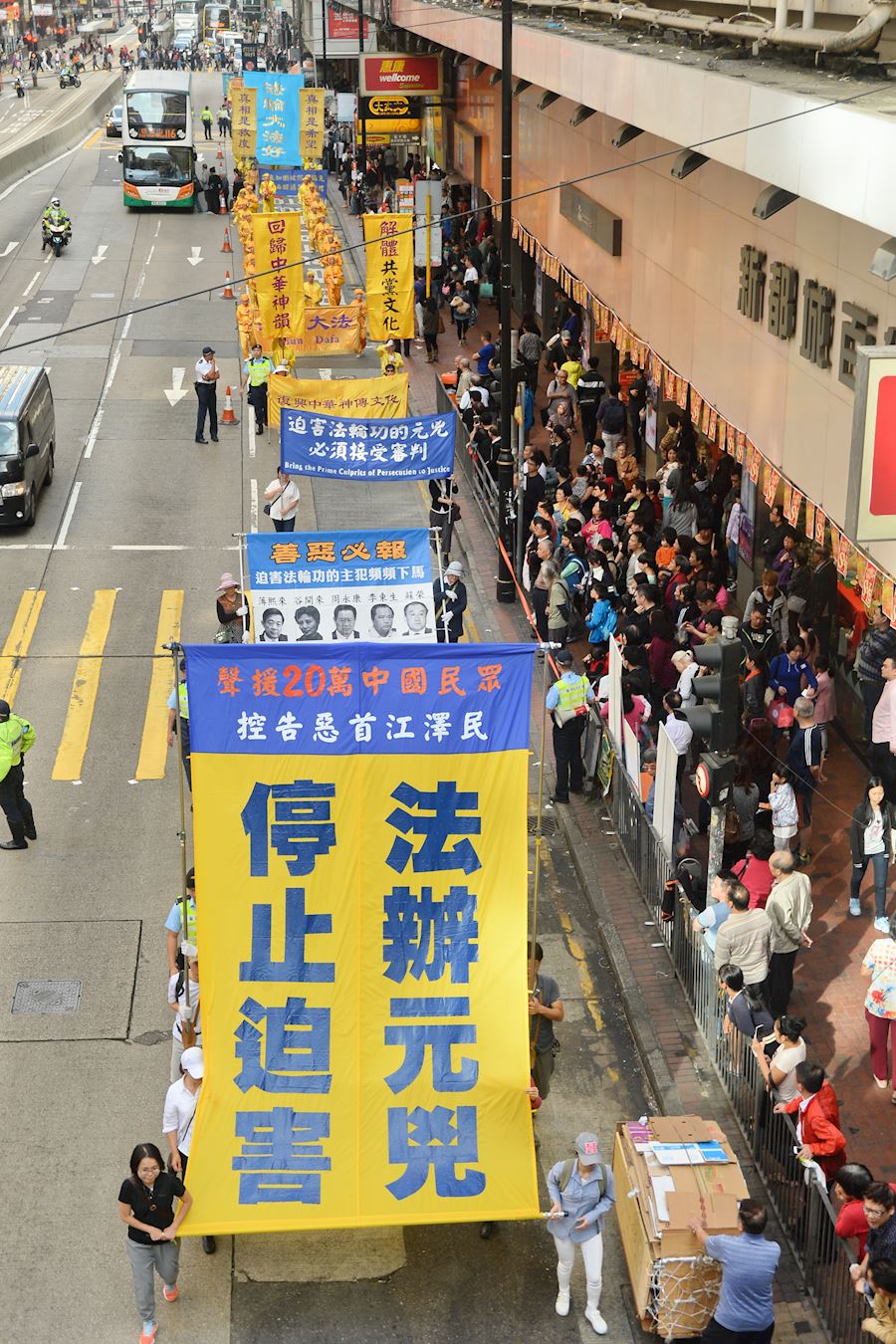 集会于中午结束后,游行队伍于下午二时,从港岛区的北角英皇道游乐场出发,历时三个多小时,游行至终点中山纪念公园,途经多个购物热点,吸引不少游客和市民观看。