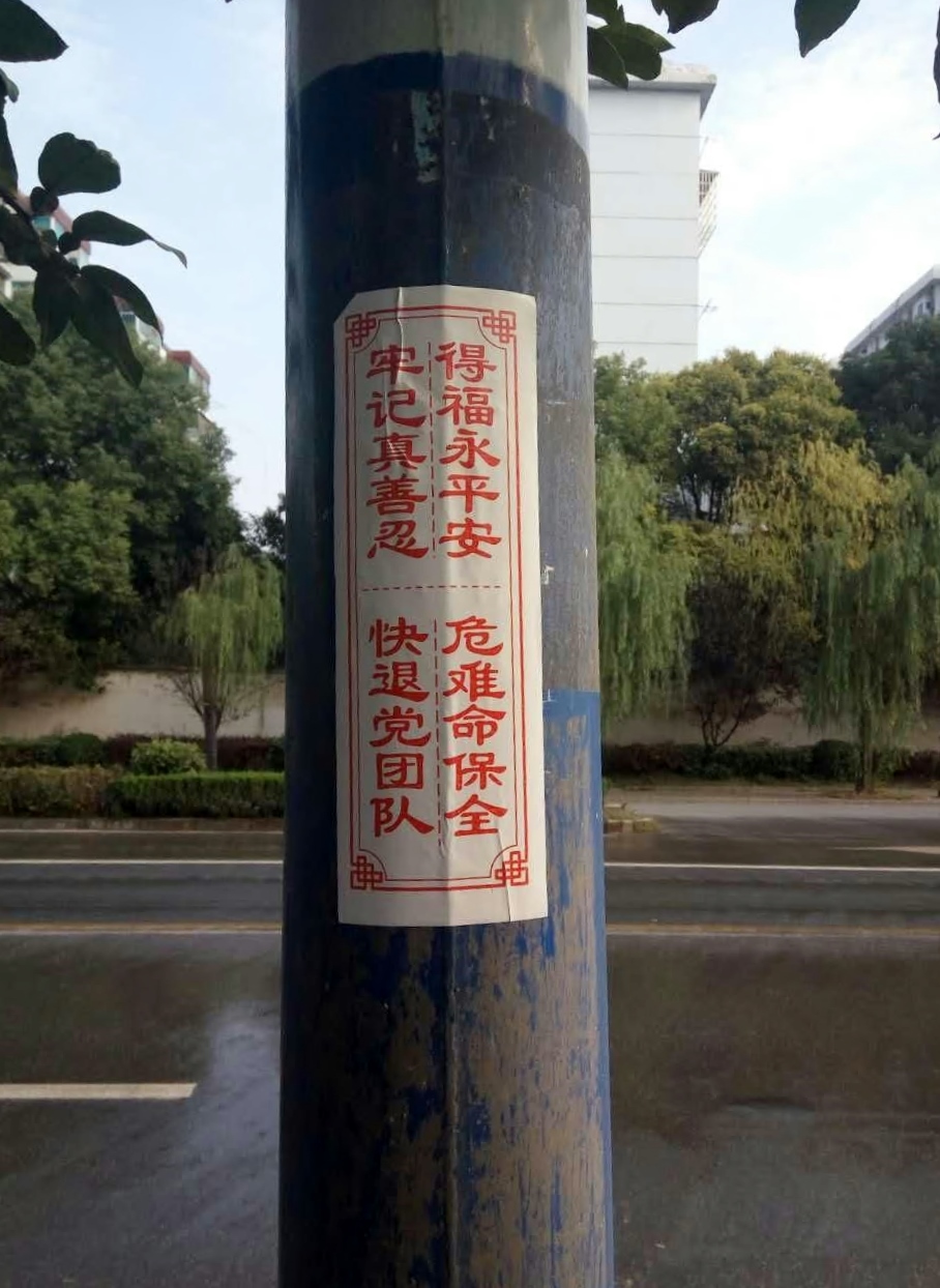 图片:大陆各地法轮功真相展板、条幅