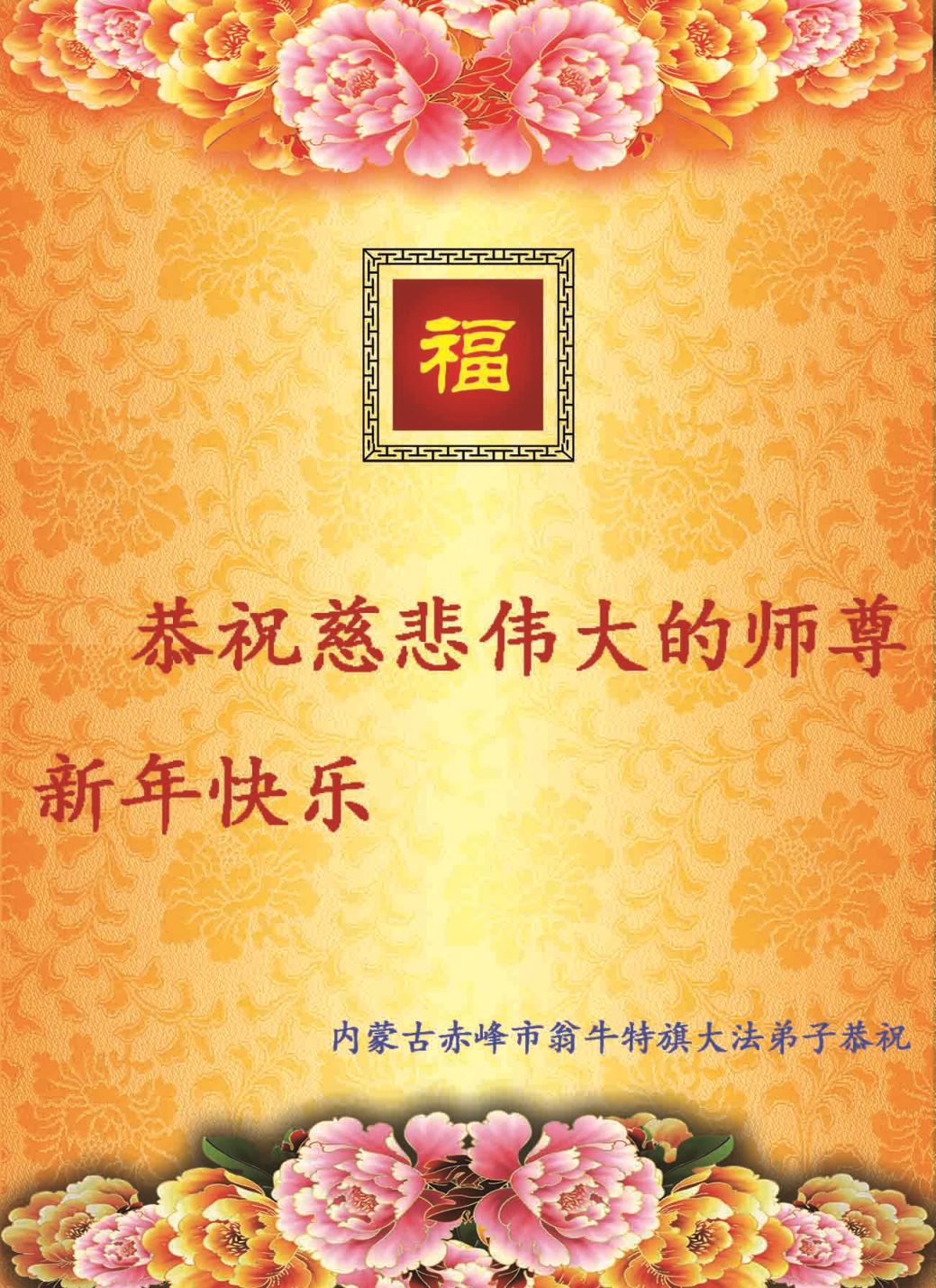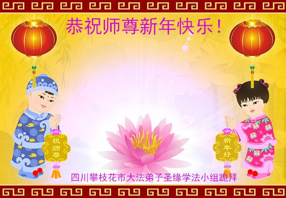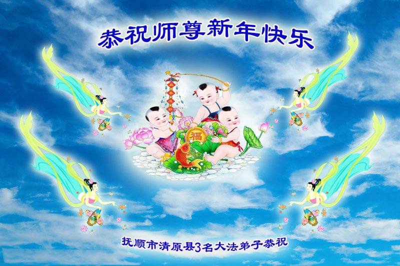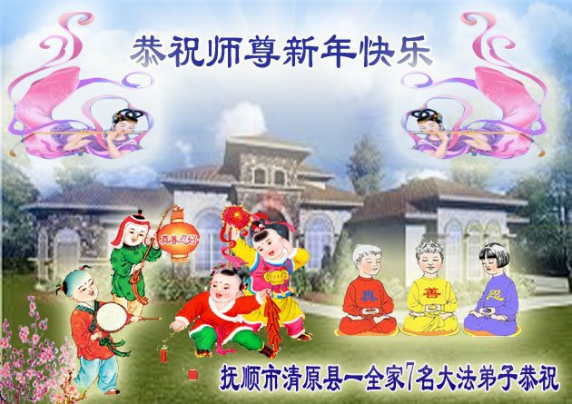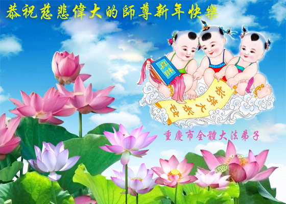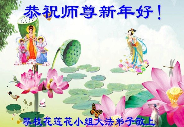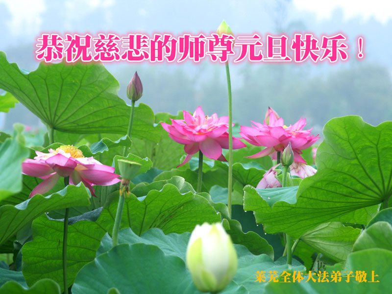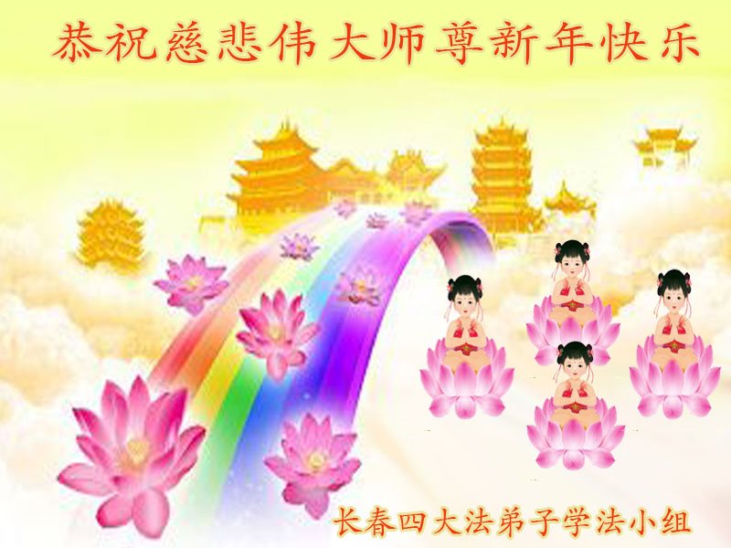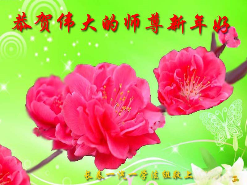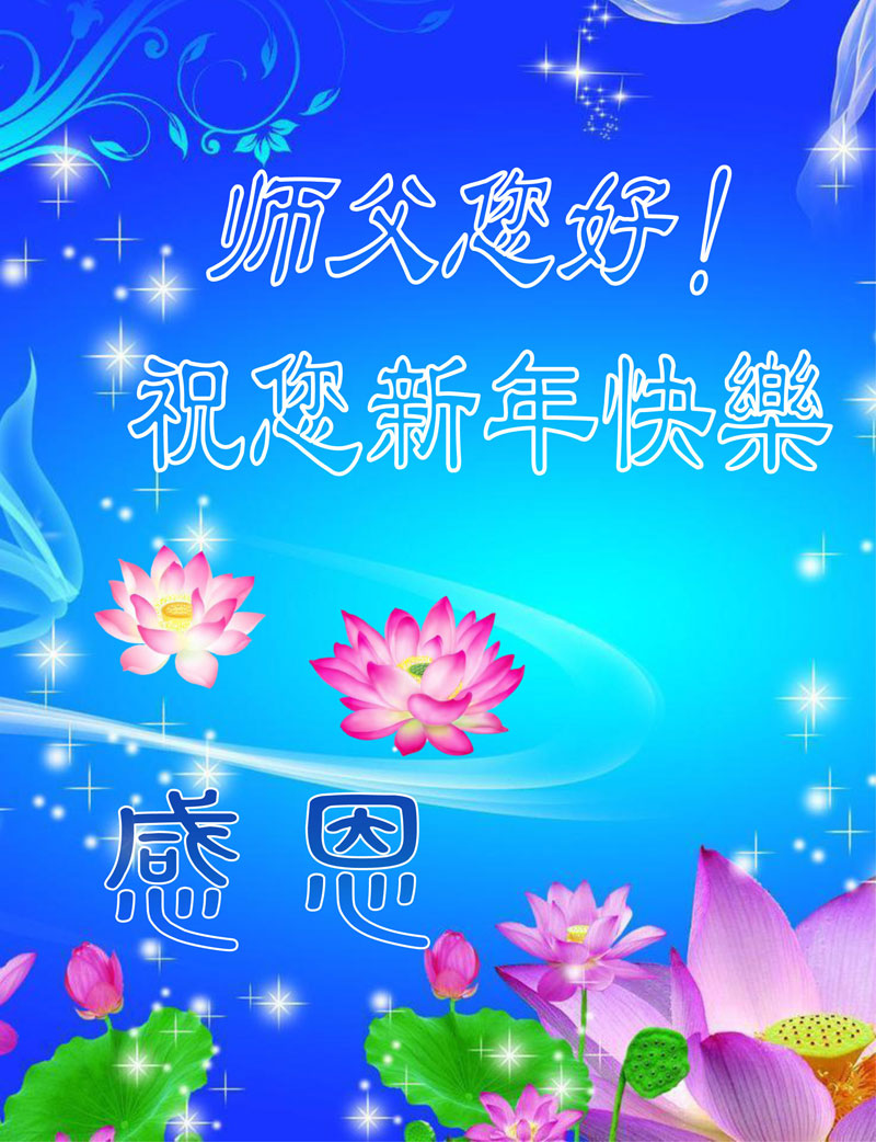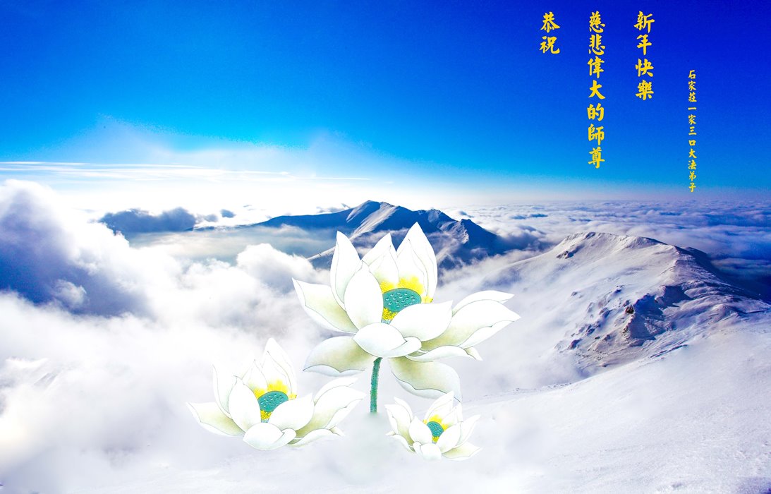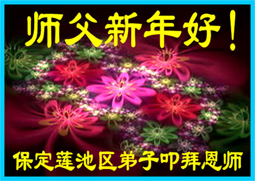 在新的一年到来之日,我们这些老年大法弟子及其家人向您慈悲伟大的师尊拜年!恭祝师父新年好!