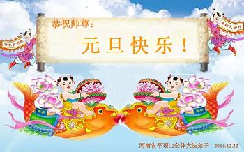 以下为部份来自北京各地的敬献给师父的元旦贺卡贺词: