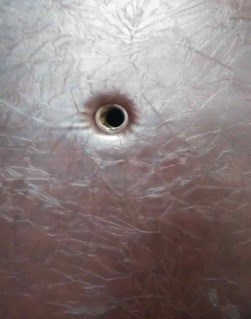 ![]() 被抠掉猫眼的门 | ![]() 门锁被撬掉 |