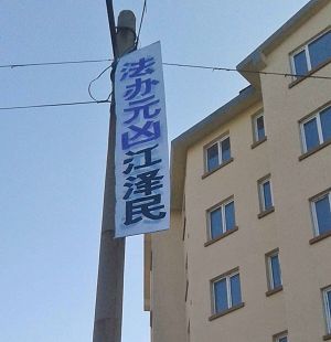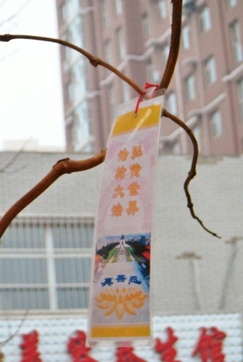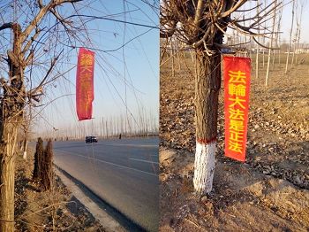 河北省衡水市过年时悬挂多日的诉江展板与真相挂件