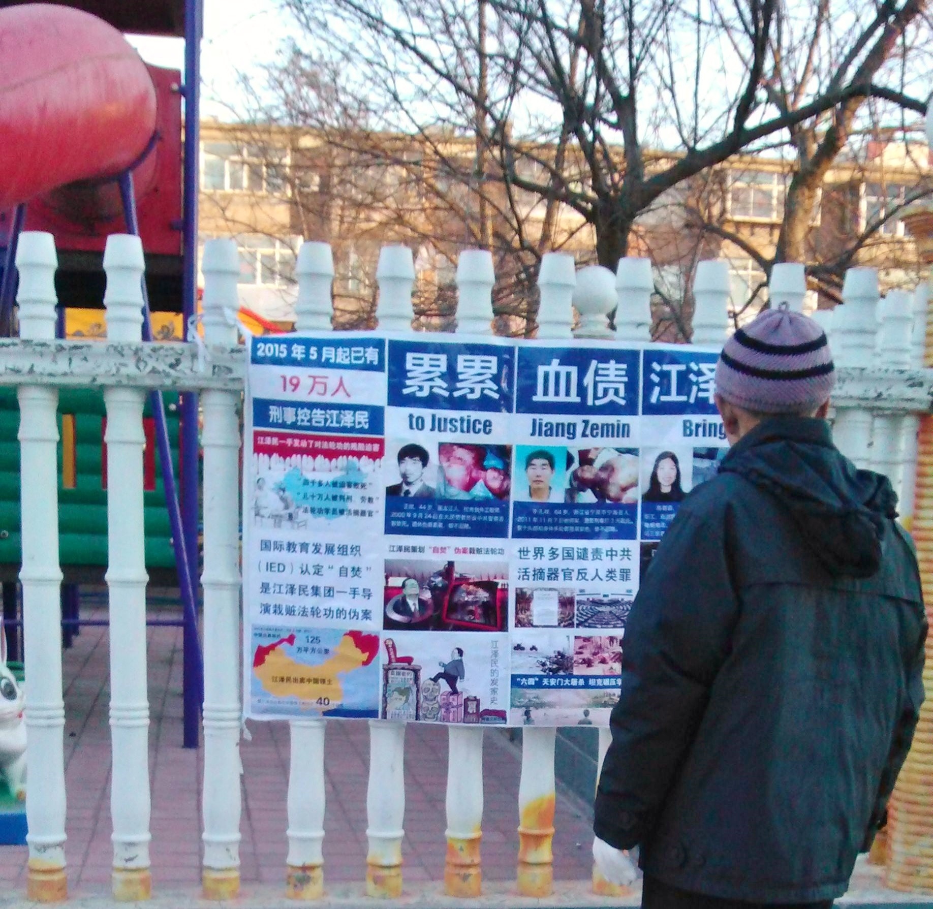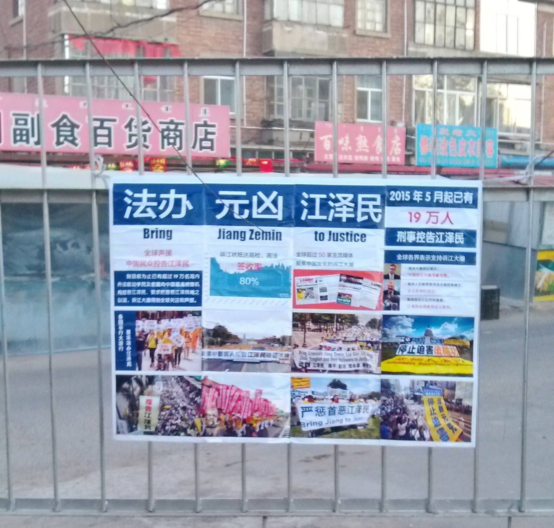 大年除夕在长春街头可见诉江展板