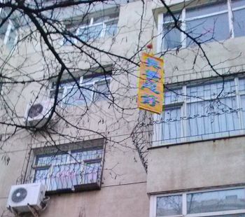 辽宁某地过年期间人们见到法轮功真相条幅