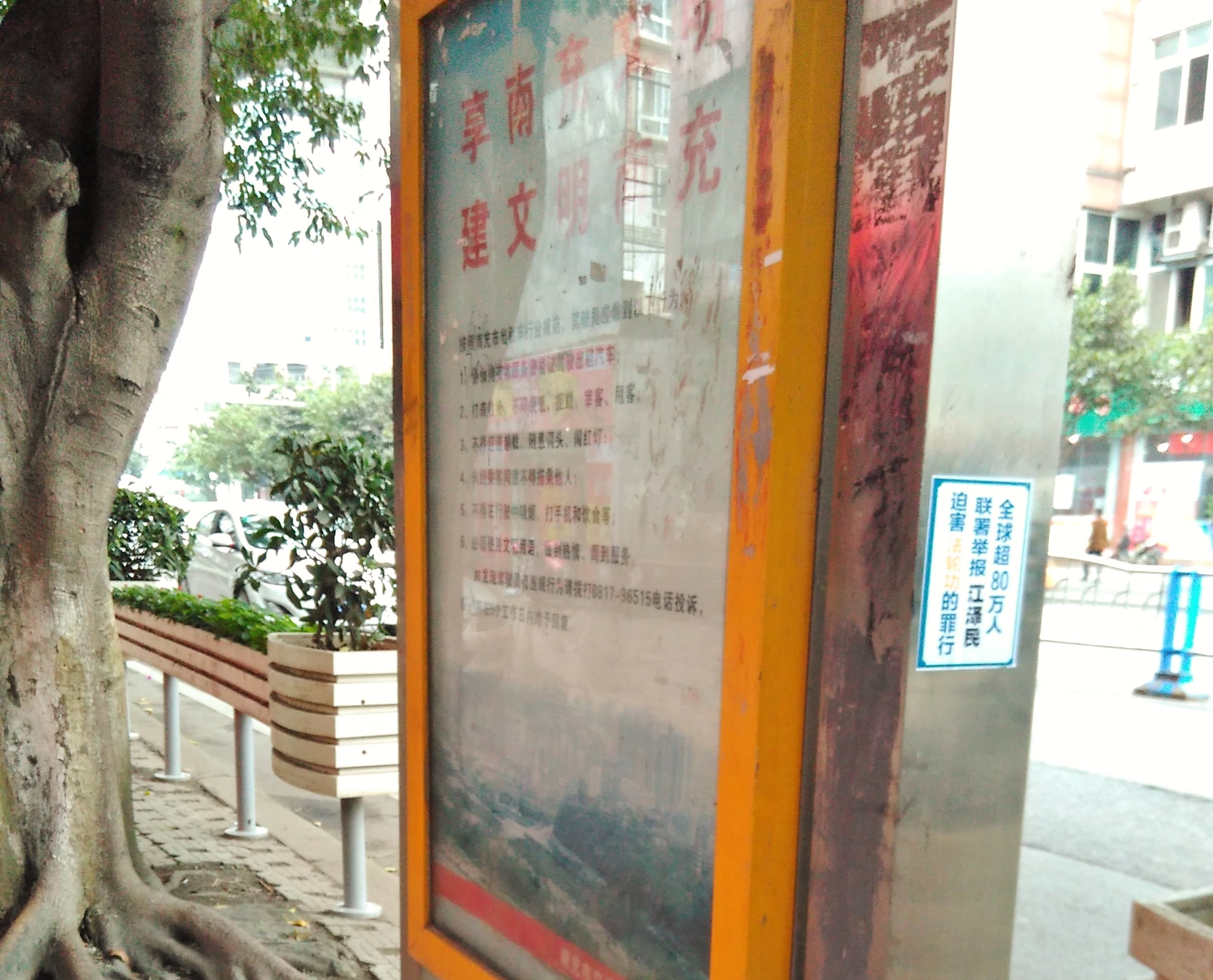 通讯员四川报道)在四川南充公园、市区、街道、公交站多处可见“法轮大法好”、“起诉江泽民”等真相标语、粘帖。