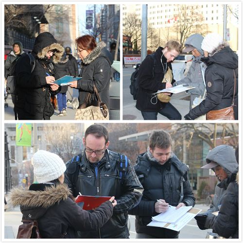 ![]() 图3-4:从去年十月开始,截至当日,多伦多各界民众已有两万多人签名举报迫害法轮功的元凶江泽民。 |