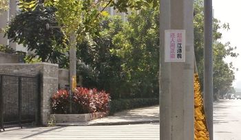 初九那天,我们在市内巡视了一圈,大街小巷和公告栏上的粘贴虽历经几次狂风暴雨,但“二十万人控告江泽民”、“全球人民支持控告江泽民”等字依然醒目,鼓舞着人心。