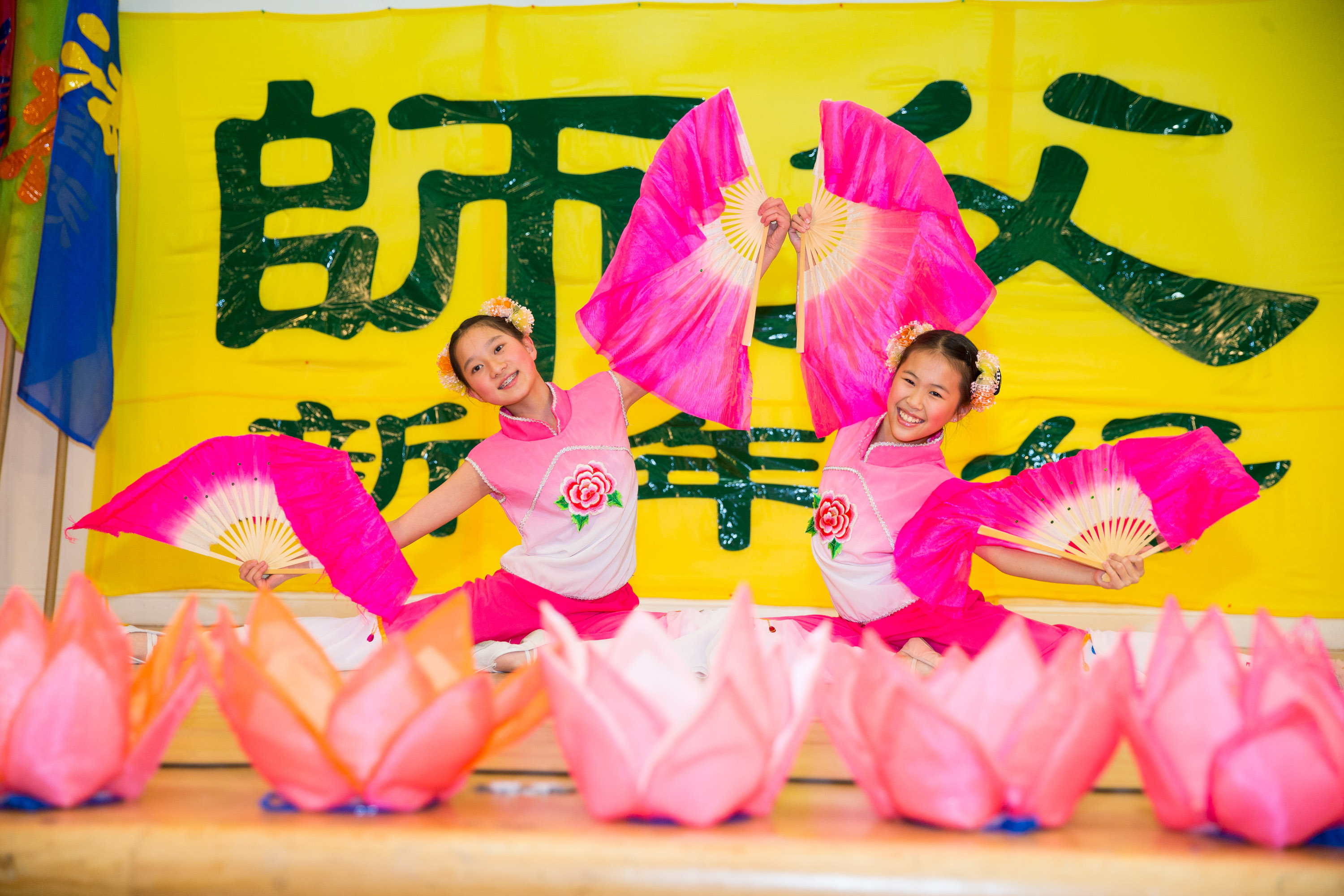 十一位大法小弟子也带来合唱《大法小弟子》,他们中年龄最小的只有两岁左右,孩子们对大法纯真的心和憨厚可爱的表情引来全场笑声阵阵。最后,退党义工和全体法轮功学员大合唱《法轮大法好》,把气氛推向最高潮。