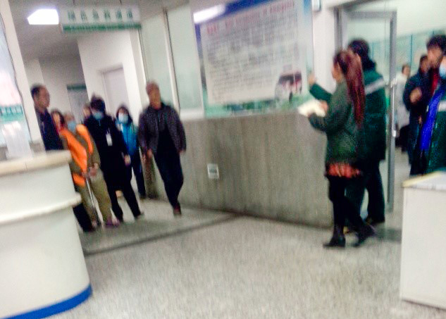 二零一六年二月二日,七十岁的霍会贤被戴着手铐脚镣由二人架着在朝阳市中心医院检查身体。由于手铐与脚镣中间连着链子,霍会贤老人弯着身体吃力挪动着,使看起来很难受的霍会贤更加痛苦,恶人们还给霍会贤戴上口罩。本是一个七十岁的老人身体又不好,却被戴上这么重的刑具,可想而知对法轮功学员迫害的程度。