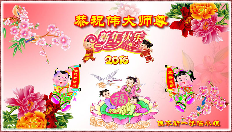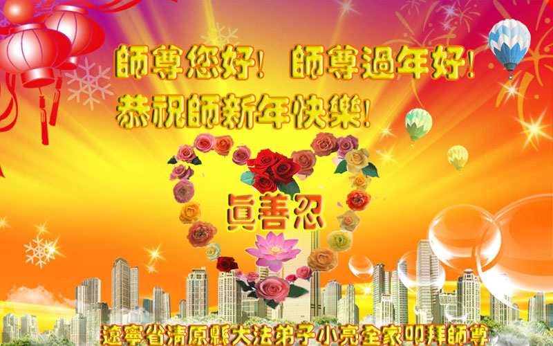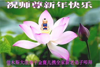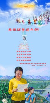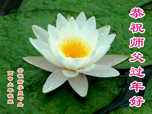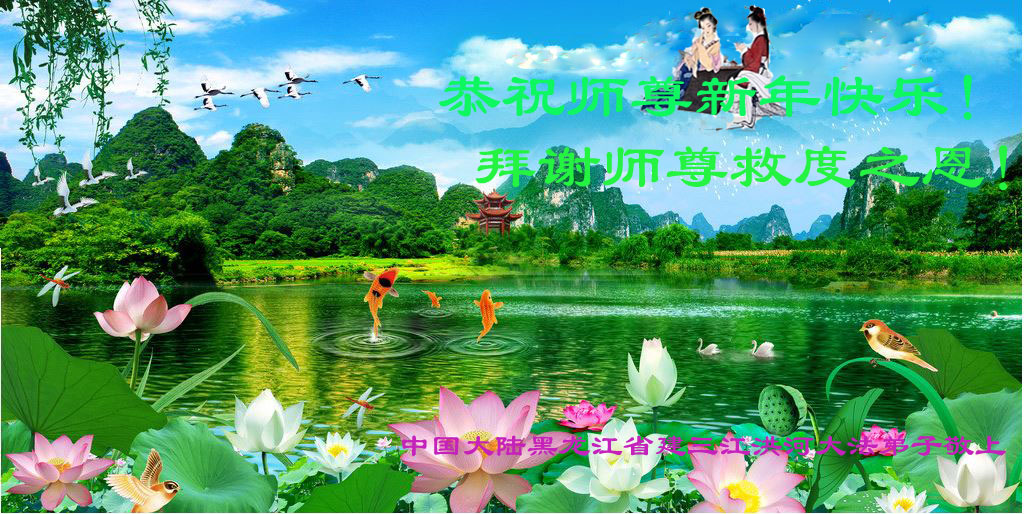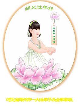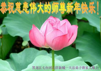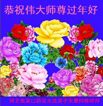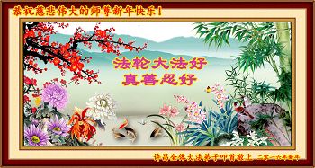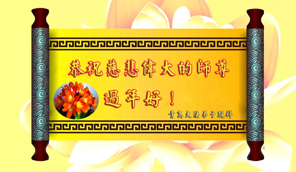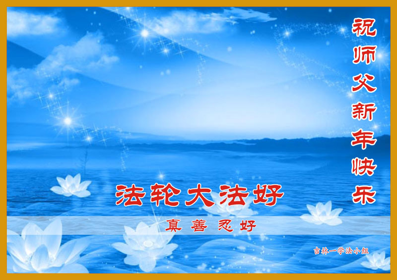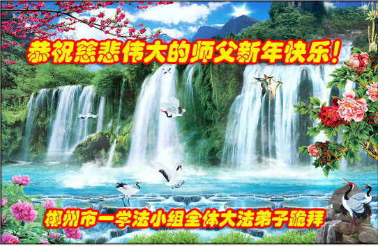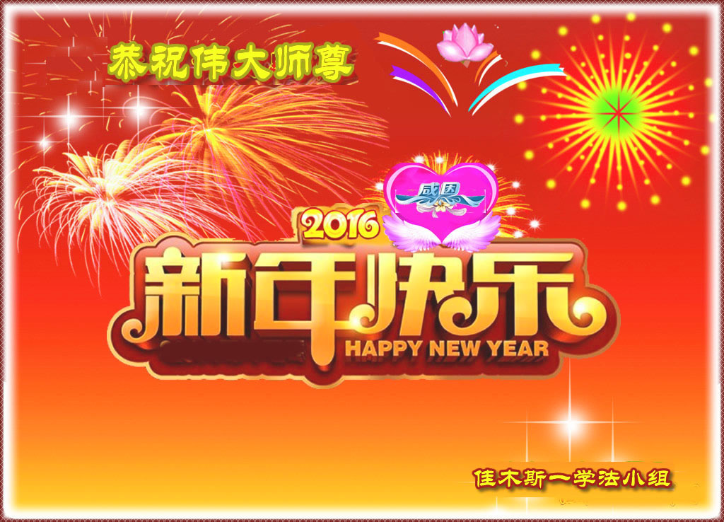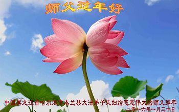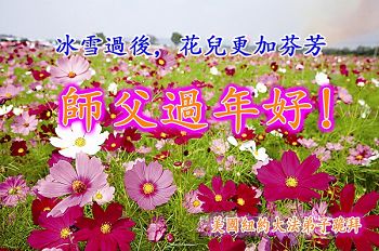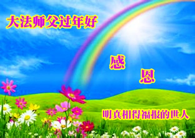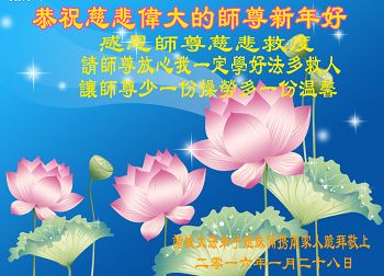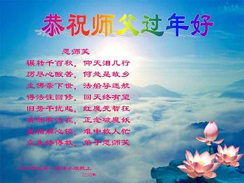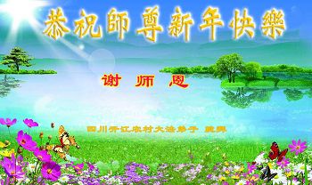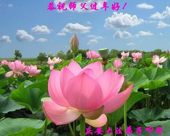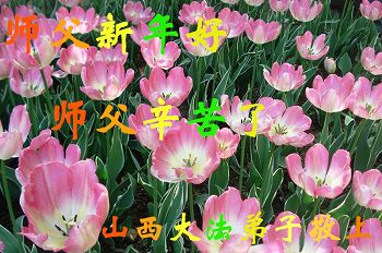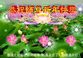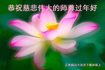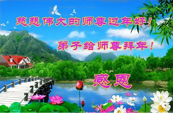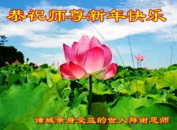 至尊无上的李大师新年好!穷尽人类的语言难以表达我们心中对李大师的无限感恩!法轮大法修炼者谨遵师命,按照真善忍的原则,遇事首先为他人着想的高贵品质,象一股清流涤荡着人类社会的一切邪恶!我们在此真心奉劝那些还被中共邪党蒙骗的世人,珍惜每一次法轮功弟子给你们的机会,明白法轮功真相,相信“法轮大法好”、“真、善、忍好”,给自己选择一个美好的未来!