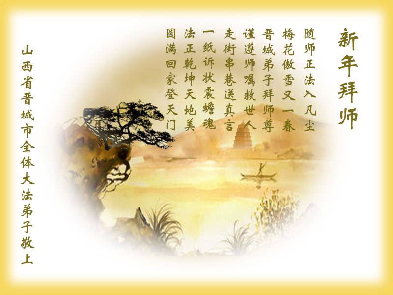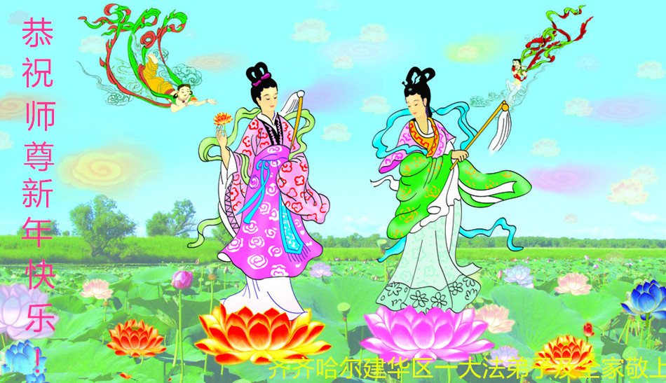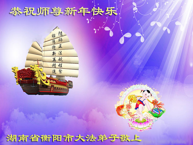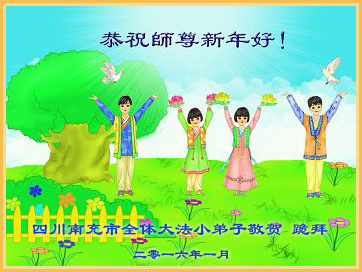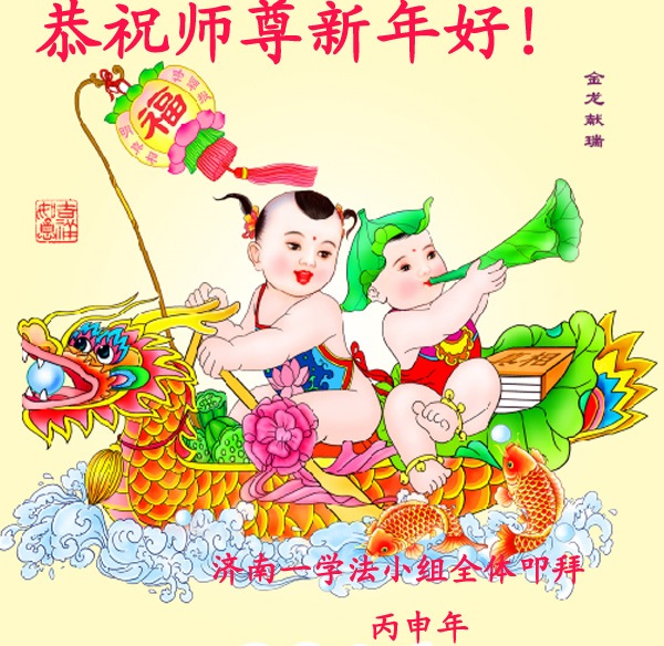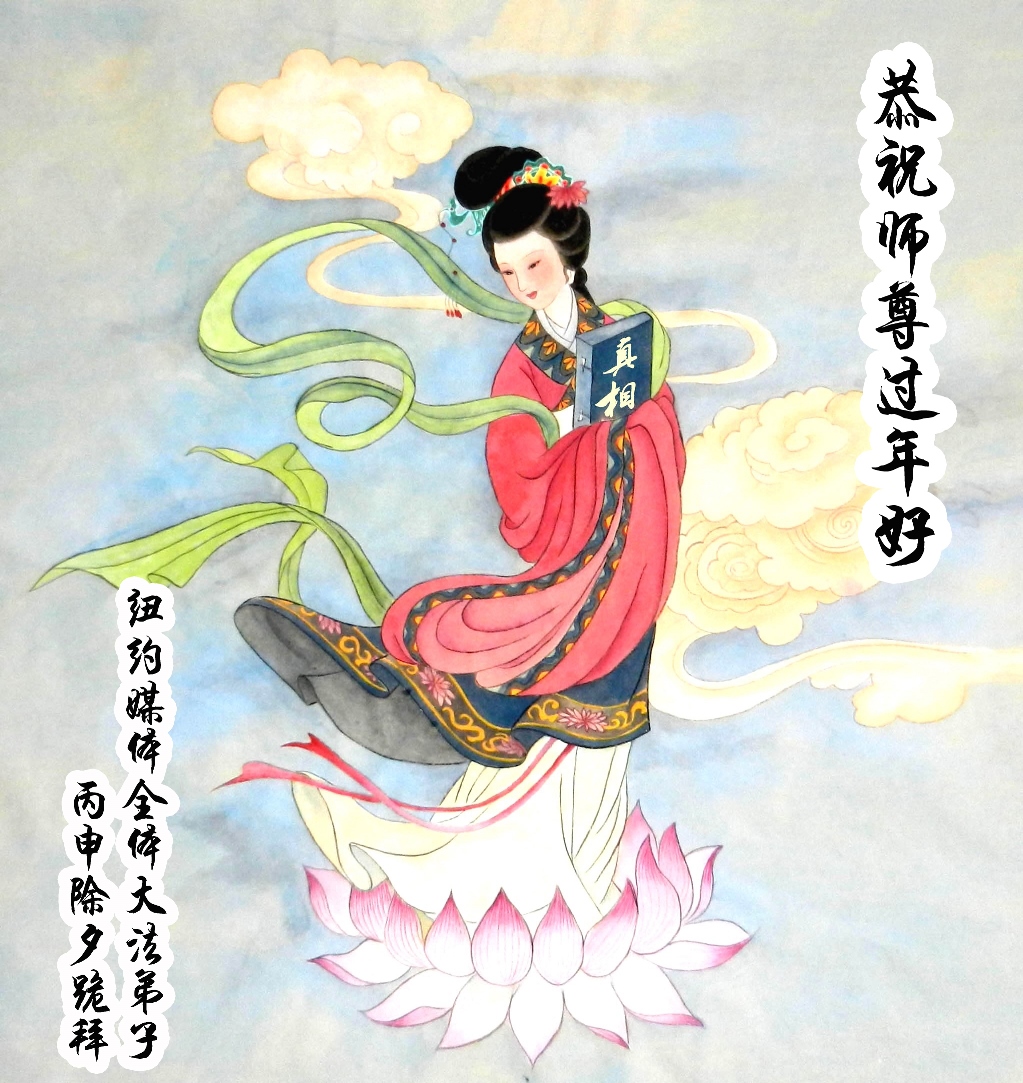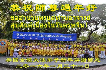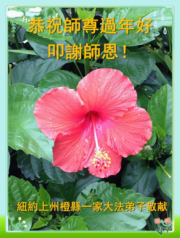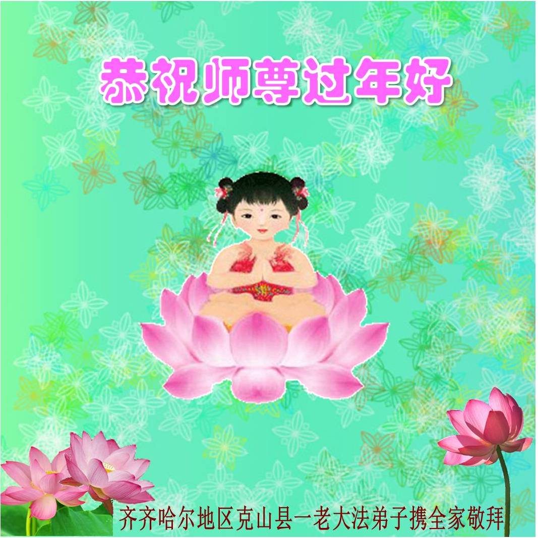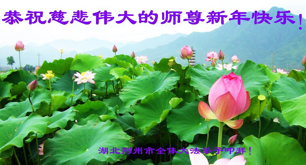 至尊无上的李大师新年好!穷尽人类的语言难以表达我们心中对李大师的无限感恩!法轮大法修炼者谨遵师命,按照真善忍的原则,遇事首先为他人着想的高贵品质,象一股清流涤荡着人类社会的一切邪恶!我们在此真心奉劝那些还被中共邪党蒙骗的世人,珍惜每一次法轮功弟子给你们的机会,明白法轮功真相,相信“法轮大法好”、“真、善、忍好”,给自己选择一个美好的未来!