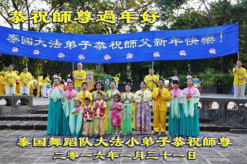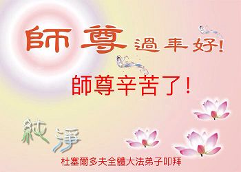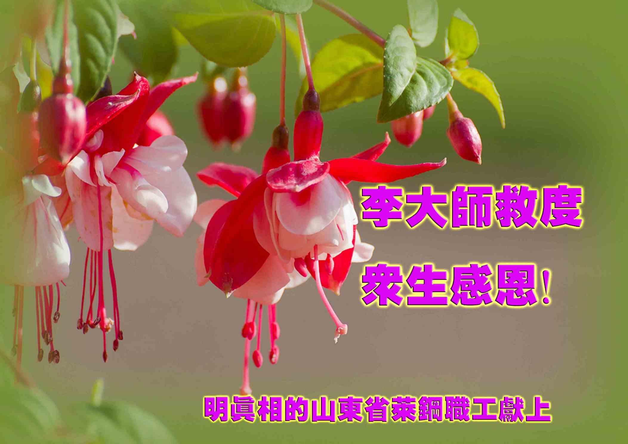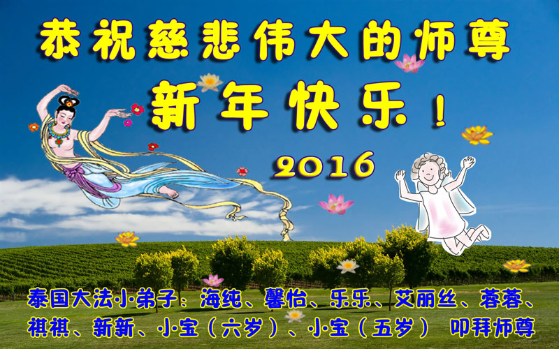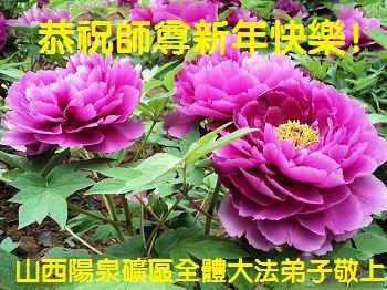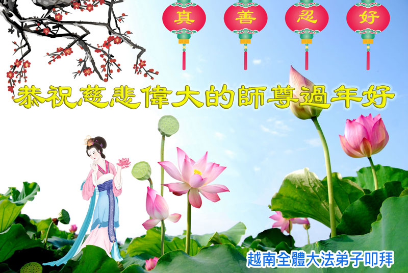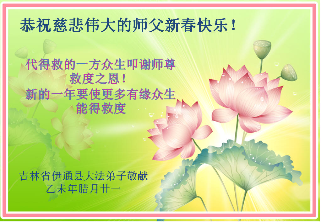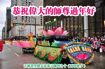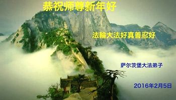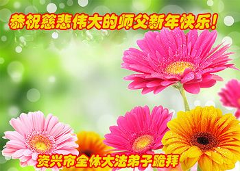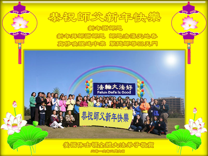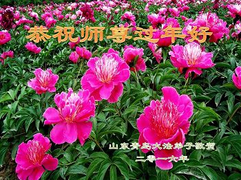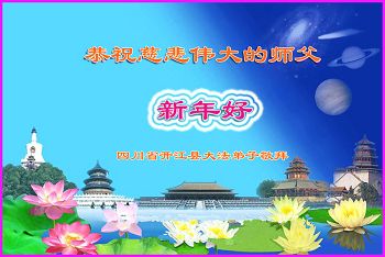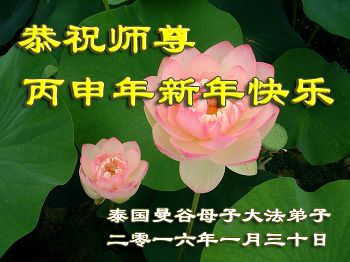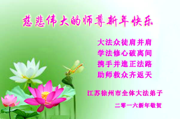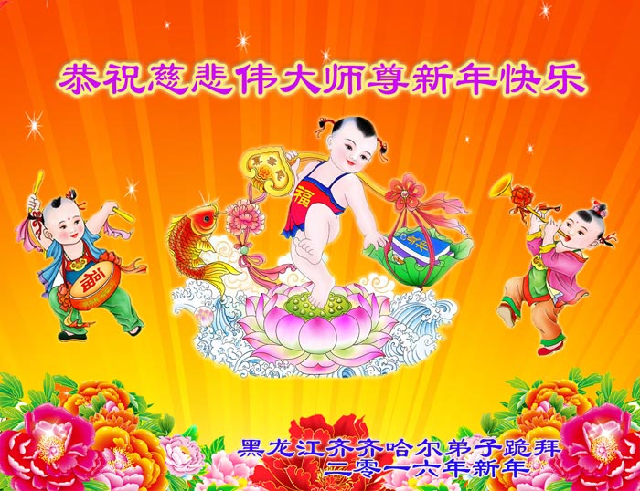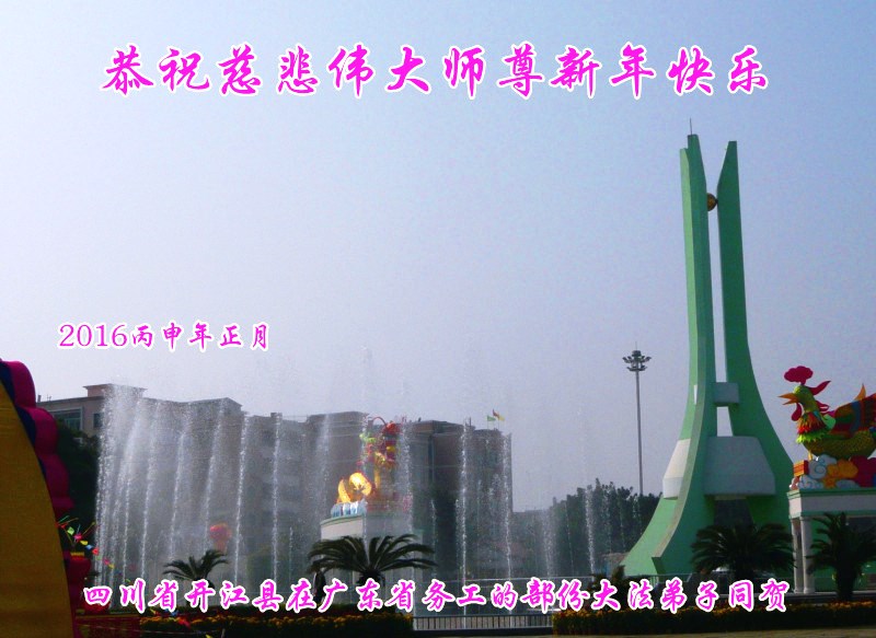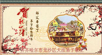 至尊无上的李大师新年好!穷尽人类的语言难以表达我们心中对李大师的无限感恩!法轮大法修炼者谨遵师命,按照真善忍的原则,遇事首先为他人着想的高贵品质,象一股清流涤荡着人类社会的一切邪恶!我们在此真心奉劝那些还被中共邪党蒙骗的世人,珍惜每一次法轮功弟子给你们的机会,明白法轮功真相,相信“法轮大法好”、“真、善、忍好”,给自己选择一个美好的未来!