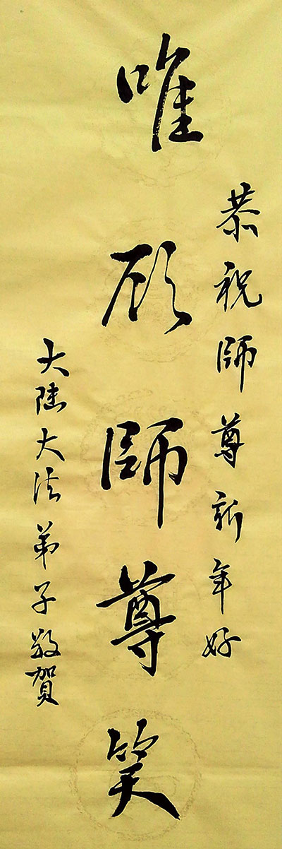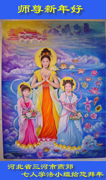 委托同事向大法师父表达敬意,并恭祝大法师父新年好!