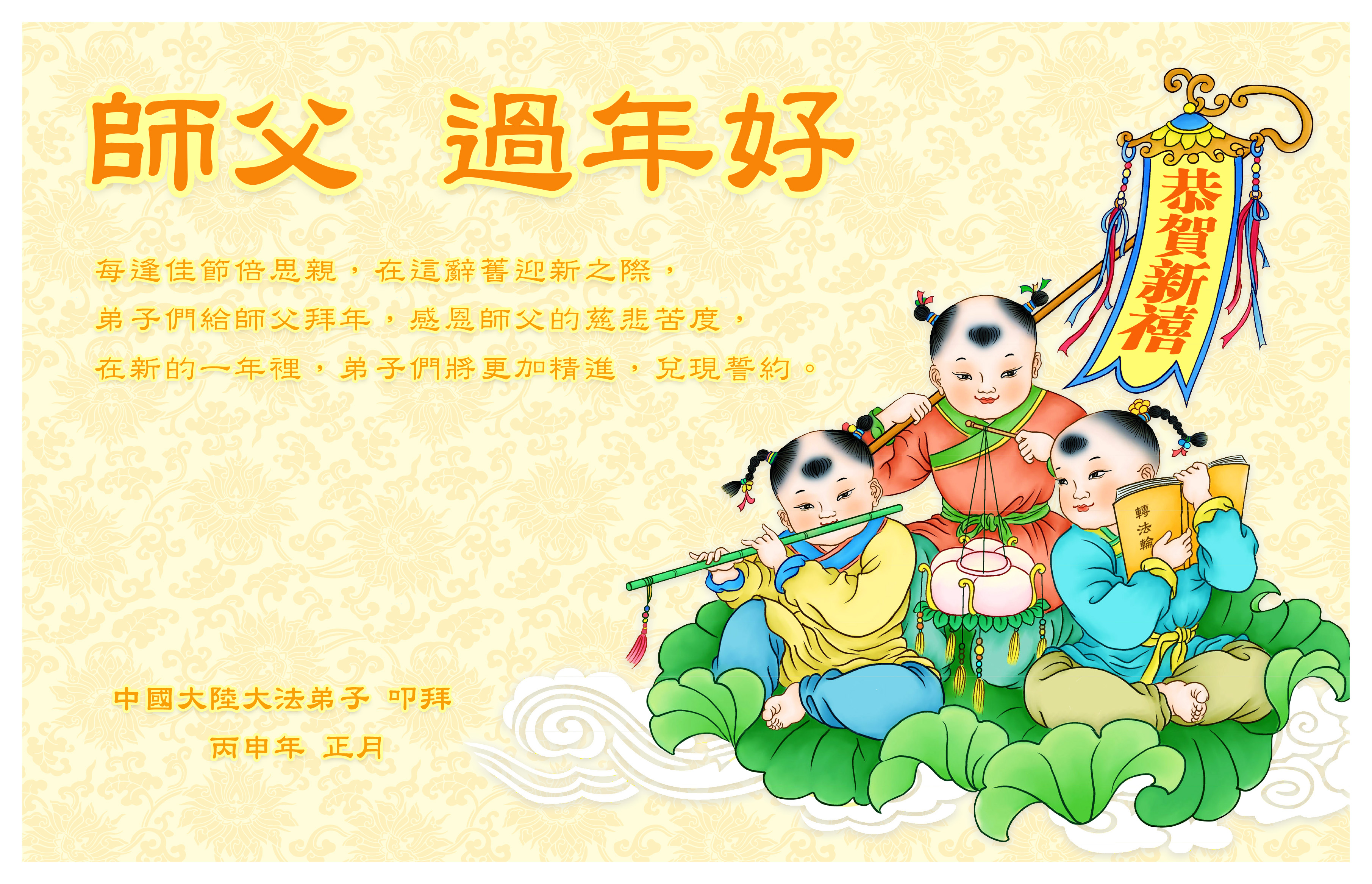 每年中国新年来临之际,海内外法轮功学员和大陆民众都纷纷把贺词贺信寄到明慧网,向慈悲伟大的李洪志师父拜年,并表达对师父的感恩。由于中共对法轮功的网络封锁和迫害,目前更多的大陆法轮功学员还只能默默地在心里祝贺。