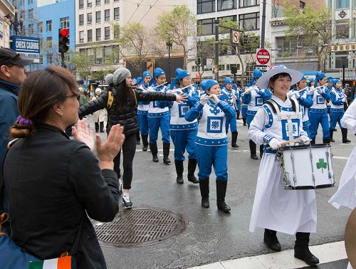 “我非常喜欢法轮功天国乐团的演奏,我很高兴他们今天能来参加游行,他们的乐队非常美妙。”旧金山居民Melben说,“发生在中国的迫害是非常不对的。我支持法轮功学员的人权。我很高兴他们今天可以在这里享有自由。”