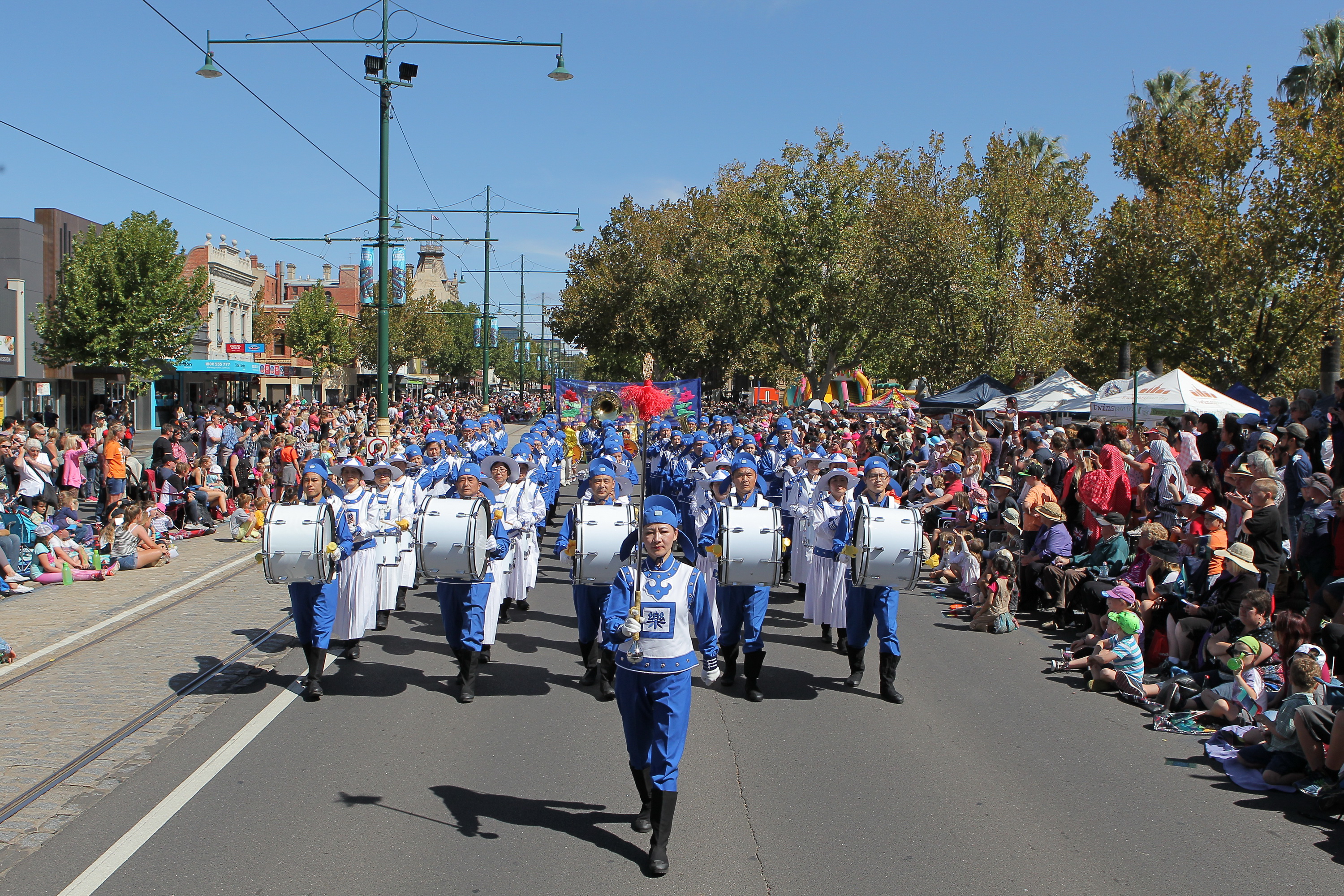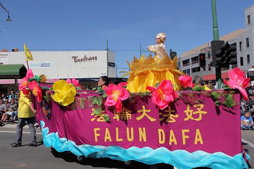 墨尔本法轮大法团体连续十六年受邀参加游行,当天有两辆精心装扮的花车和色彩各异的表演方阵向世人展示了法轮大法的美好。