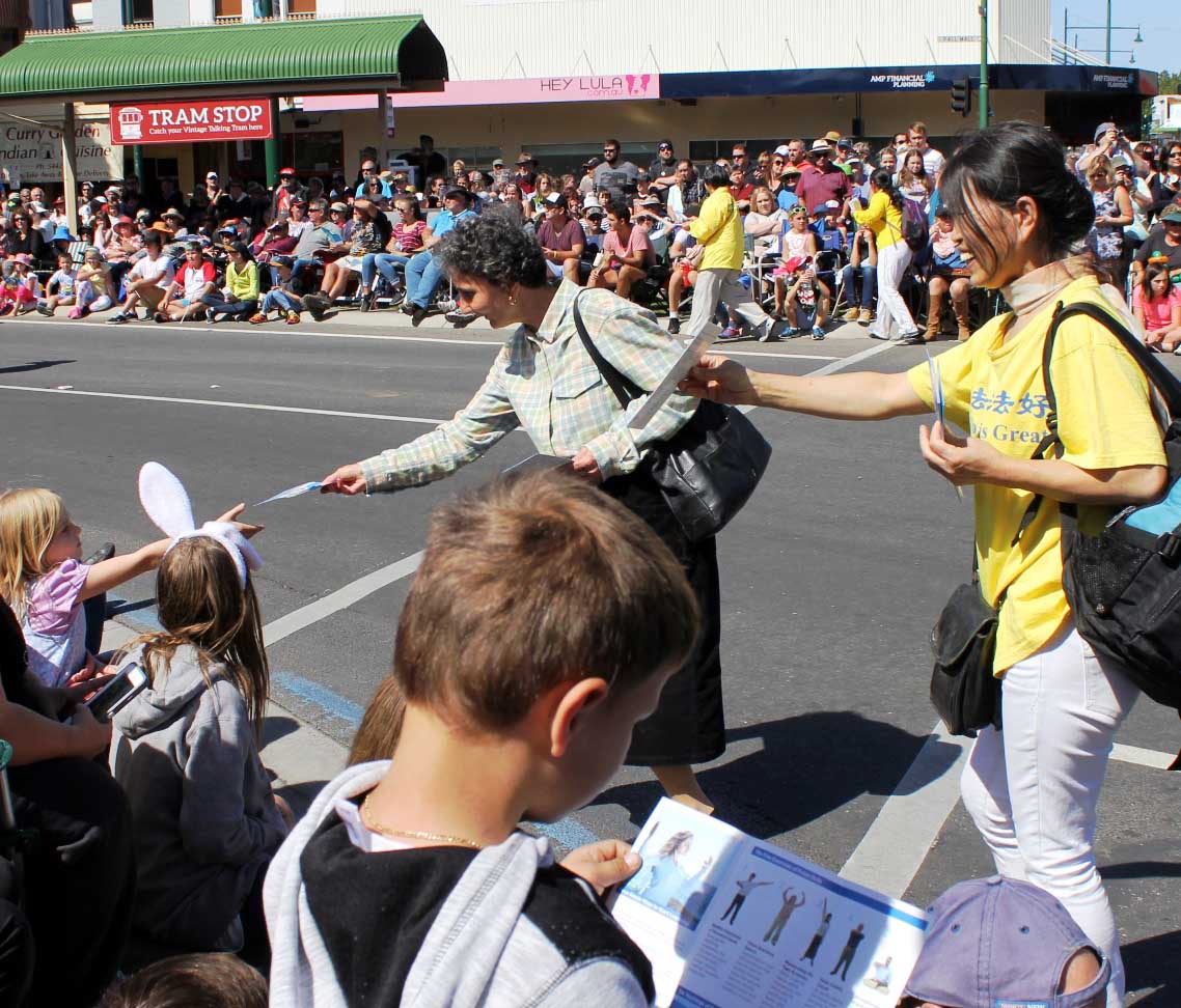【明慧网二零一六年三月二十九日】(明慧记者班迪戈采访报导)二零一六年三月二十七日下午,澳洲维省著名旅游城市班迪戈(Bendigo)举行了一年一度的复活节盛装大游行。当天晴空万里、微风宜人,游行路线沿途的街道两边,早早就挤满了本地居民以及来自各地的游客。