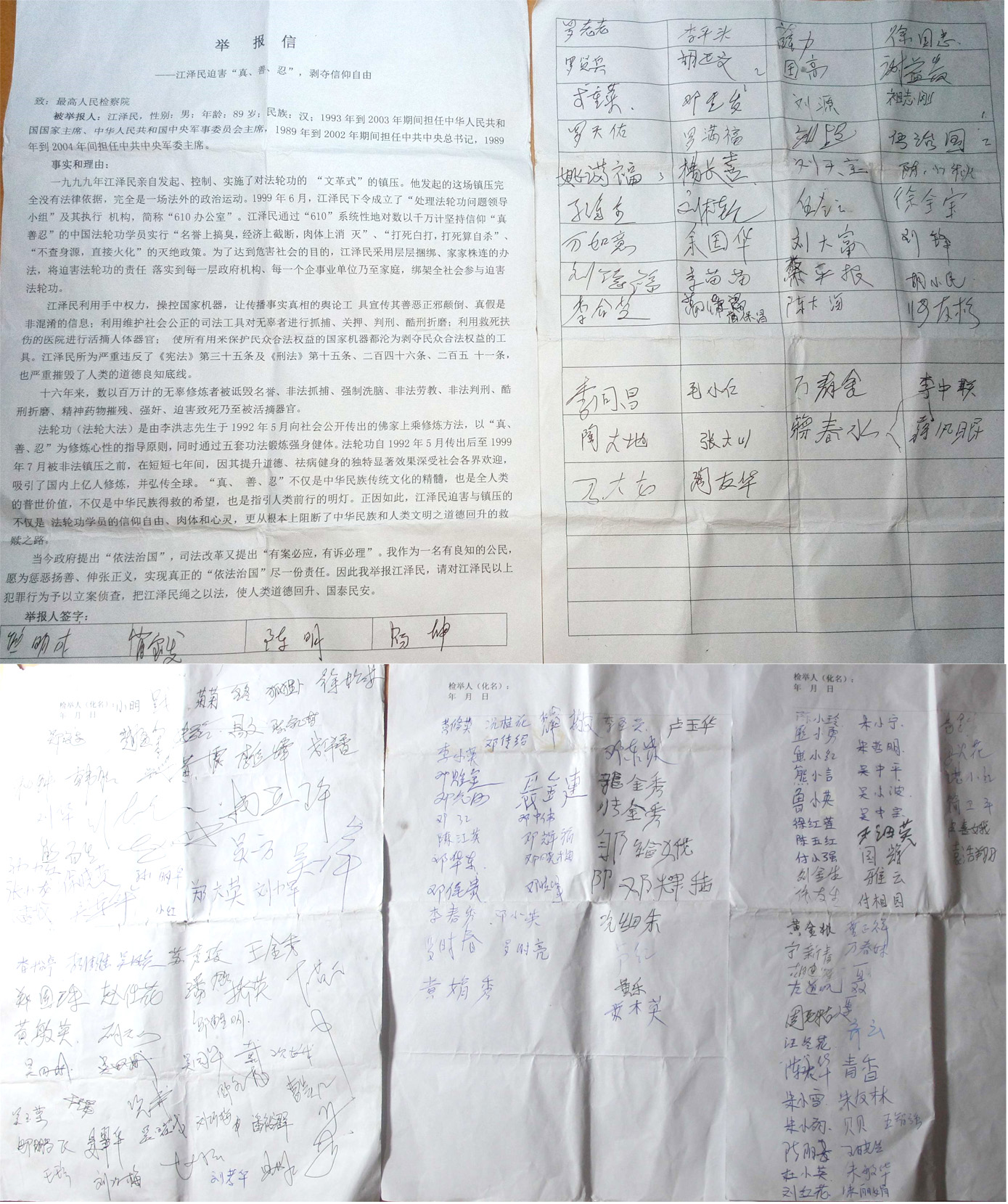 有位老大爷朗声说:“我活这把年纪,我清楚江泽民不是什么好东西,签名举报,我签。”