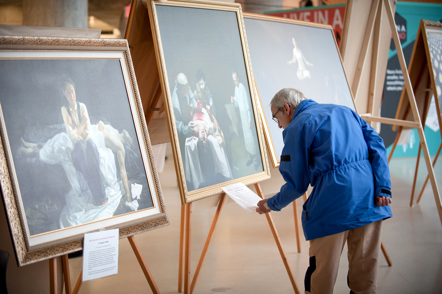 珍(Jan)说:这些画让我了解到了以前不知道的,在西方世界之外的让人震惊的残暴政权。这些画表现了一个和平的修炼遭受邪恶的迫害。
