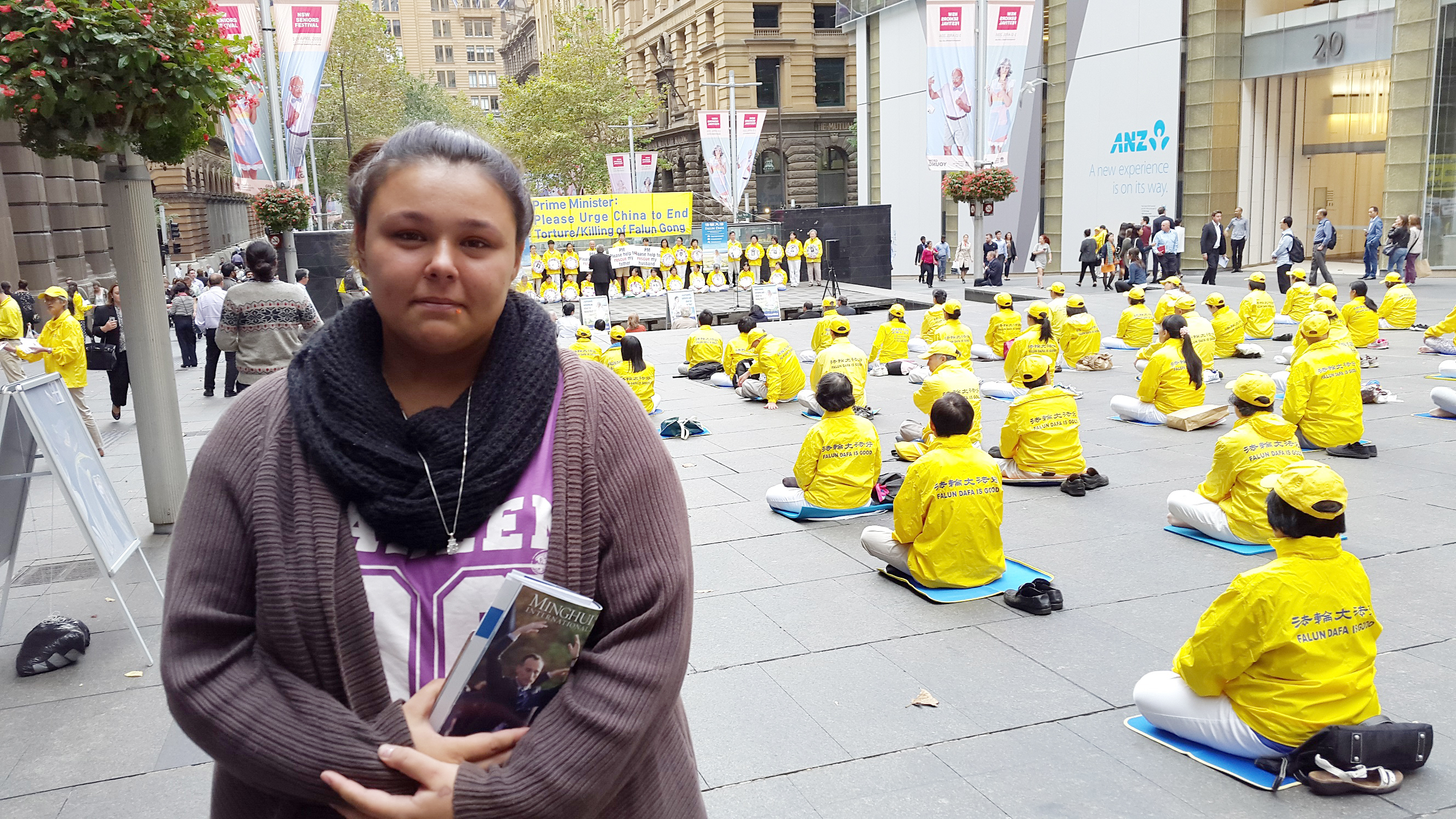 在悉尼科技大学(UTS)读社会学的学生珊漾(Shanaye March),一直在一旁擦眼泪,她表示:刚刚埃里克的发言让我哭得很伤心,我对中国政府非常失望,他们竟然如此对待他们的公民。希望我们的总理能够尊重民心,希望他(访华)回来时告诉我们,在中国的法轮功学员都被释放了,他们都能够享有基本人权和信仰自由。”