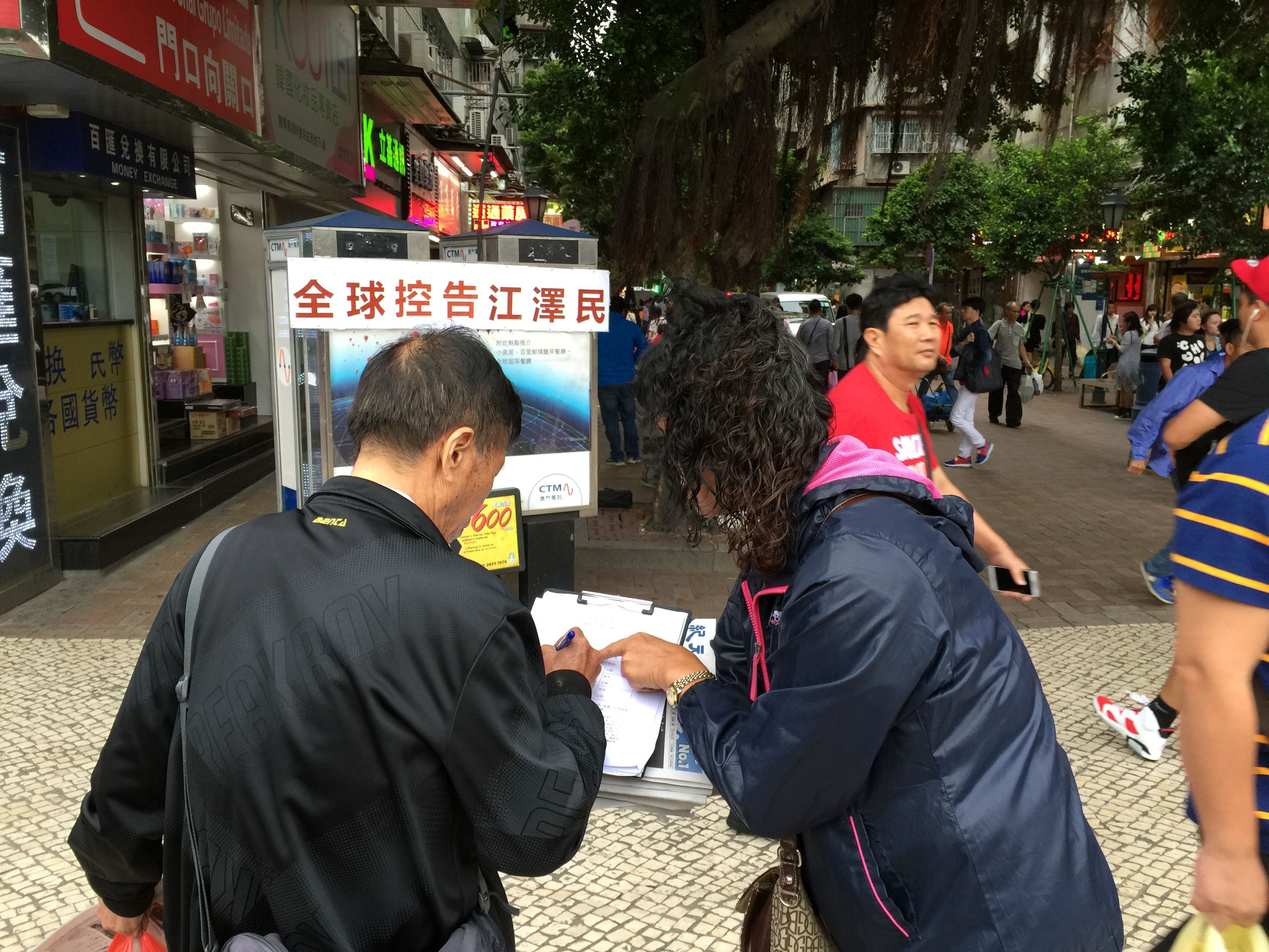 图1:声援“诉江大潮”,澳门法轮功学员征集签名、联署举报迫害元凶江泽民。