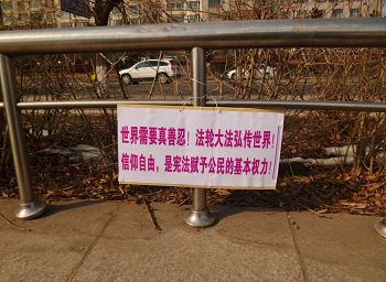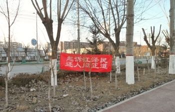 哈尔滨、吉林、廊坊、保定街头的真相展板、条幅