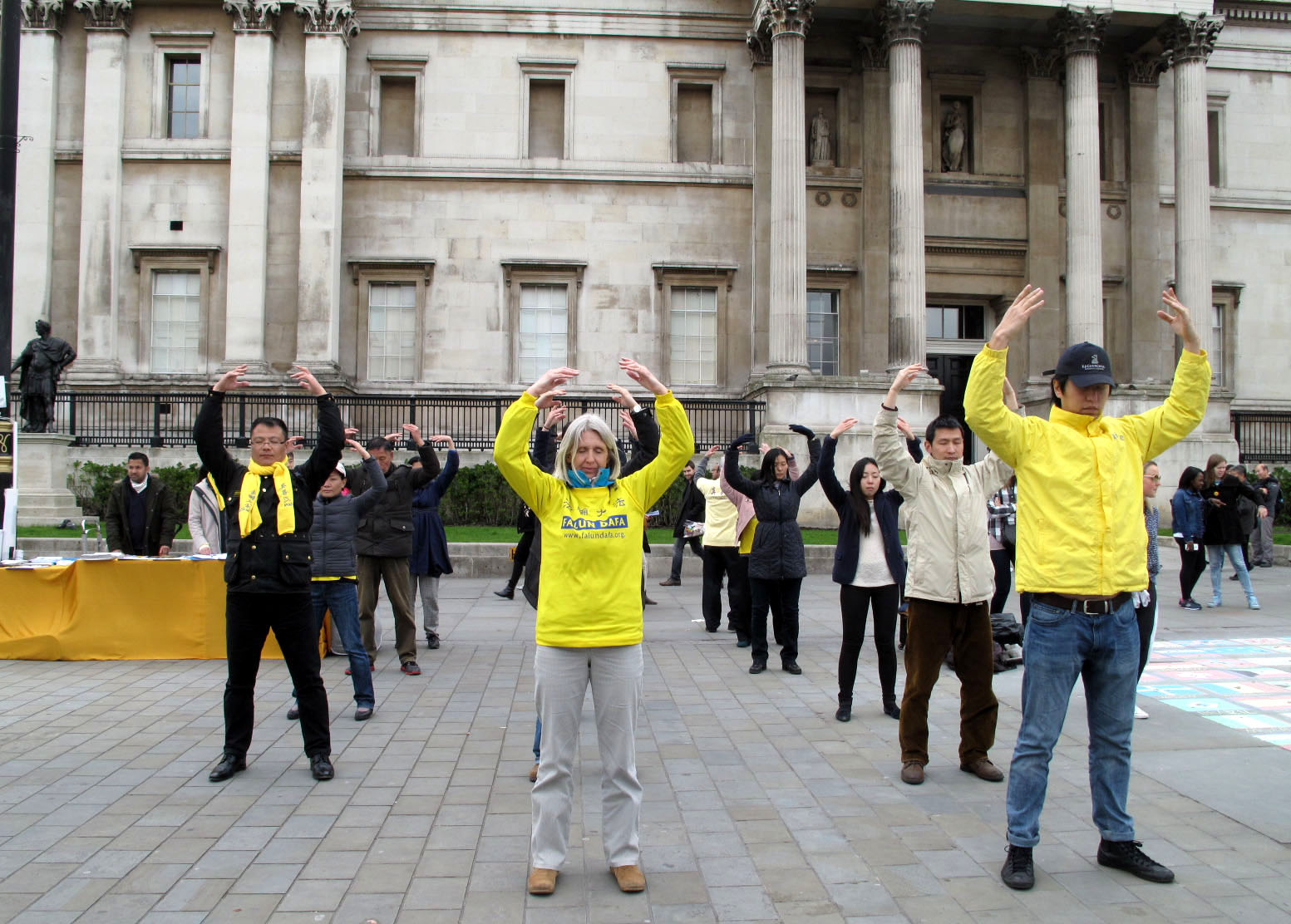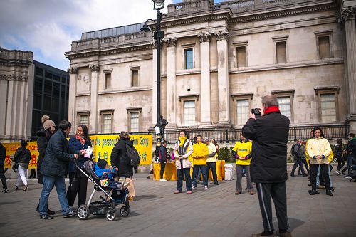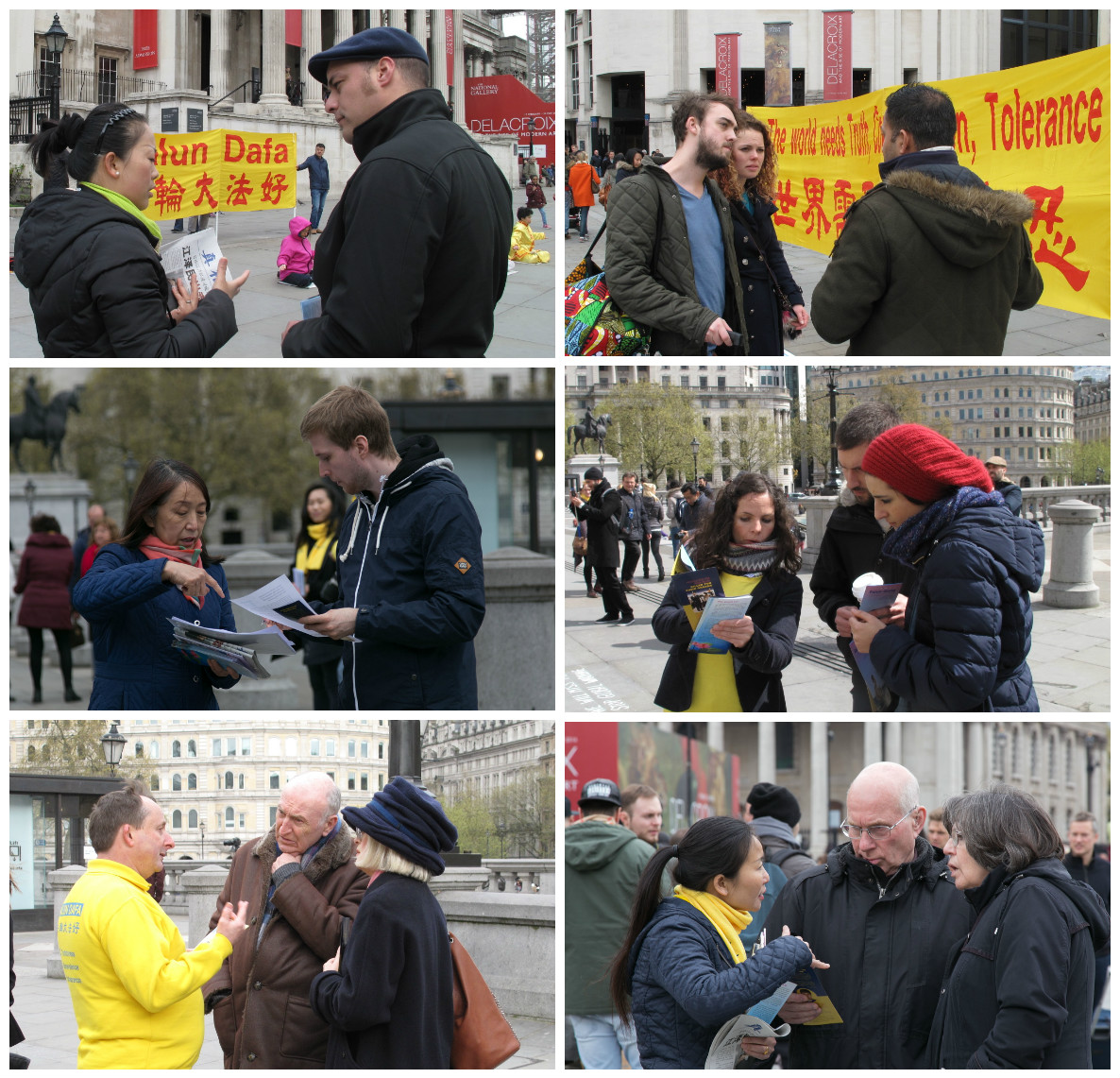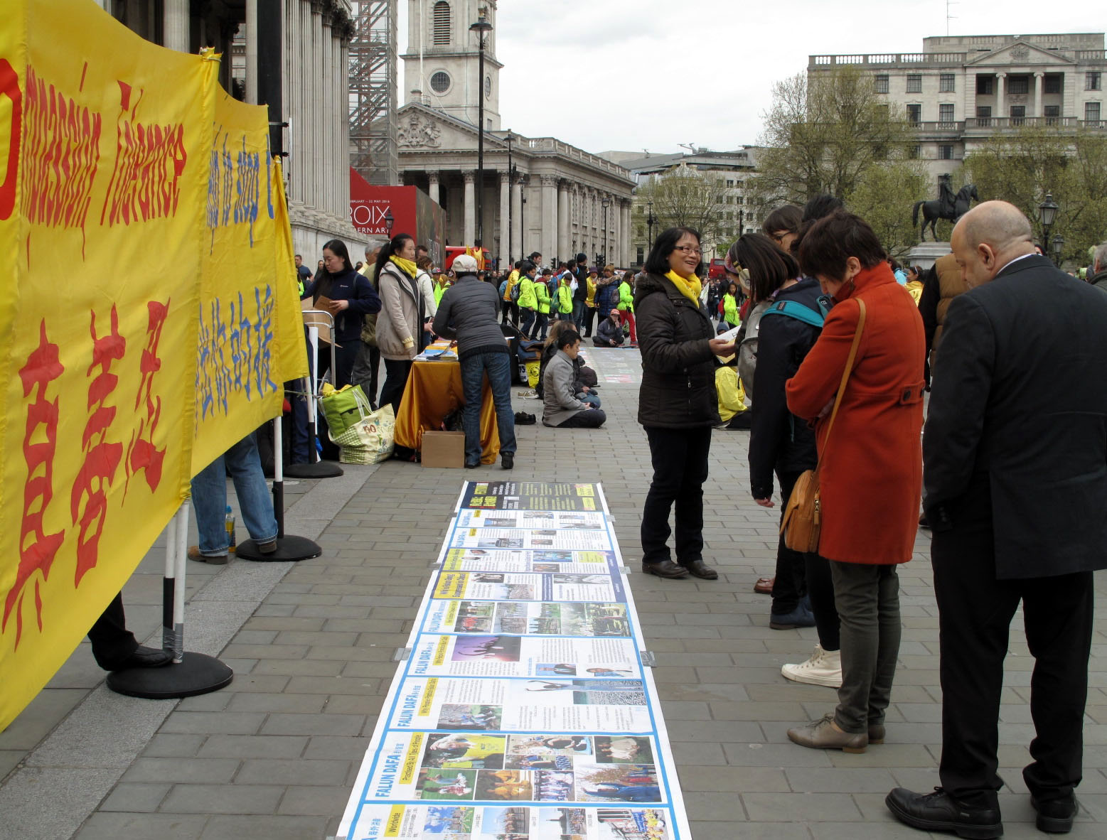 ![]() 图1-4:二零一六年四月二十四日,英国法轮功学员在位于伦敦市中心的鸽子广场(Trafalgar Square)举行活动,纪念四二五和平上访十七周年。 |